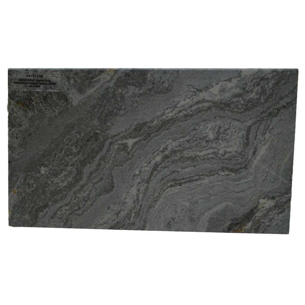 Keystone Silver Quartz 13" x 24" Porcelain Bullnose Coping provides a professional finish to steps, pools, and terraces. The bullnose edge adds safety and a polished look, coordinating perfectly with matching Silver Quartz tiles for cohesive outdoor installations.