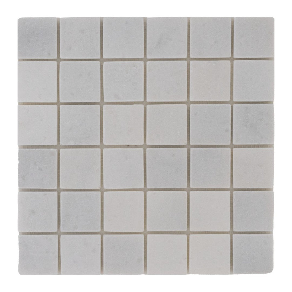 Keystonetile offers the Keystone Snow White 12" x 12" Tumbled Marble 2" Mosaic for those seeking a larger tile size with the same weathered marble texture. The 2" mosaic pieces create a subtle, elegant pattern while maintaining a smooth, tactile surface. This mosaic tile works well in areas needing a timeless look with added character.