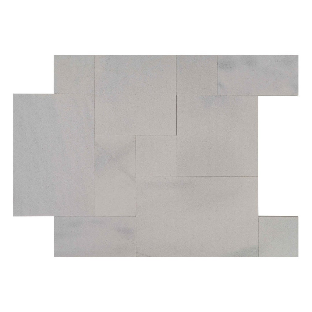 Keystone Snow White Sandblasted Marble Versailles Pattern Paver is a sophisticated option for outdoor flooring with a historic flair. The sandblasted texture ensures slip resistance, while the Versailles pattern provides a timeless, elegant look for patios, courtyards, and walkways.