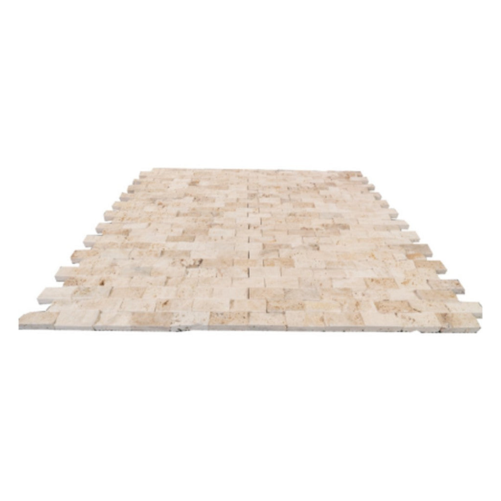Keystonetile’s Keystone Tiramisu 12" x 12" Split Face Natural Stone 1x2" Mosaic features a dramatic textured surface that contrasts beautifully with the soft Tiramisu color palette. The 1x2" split face pieces add dimension and a tactile quality, perfect for accent walls and decorative niches that require a natural yet stylish finish.