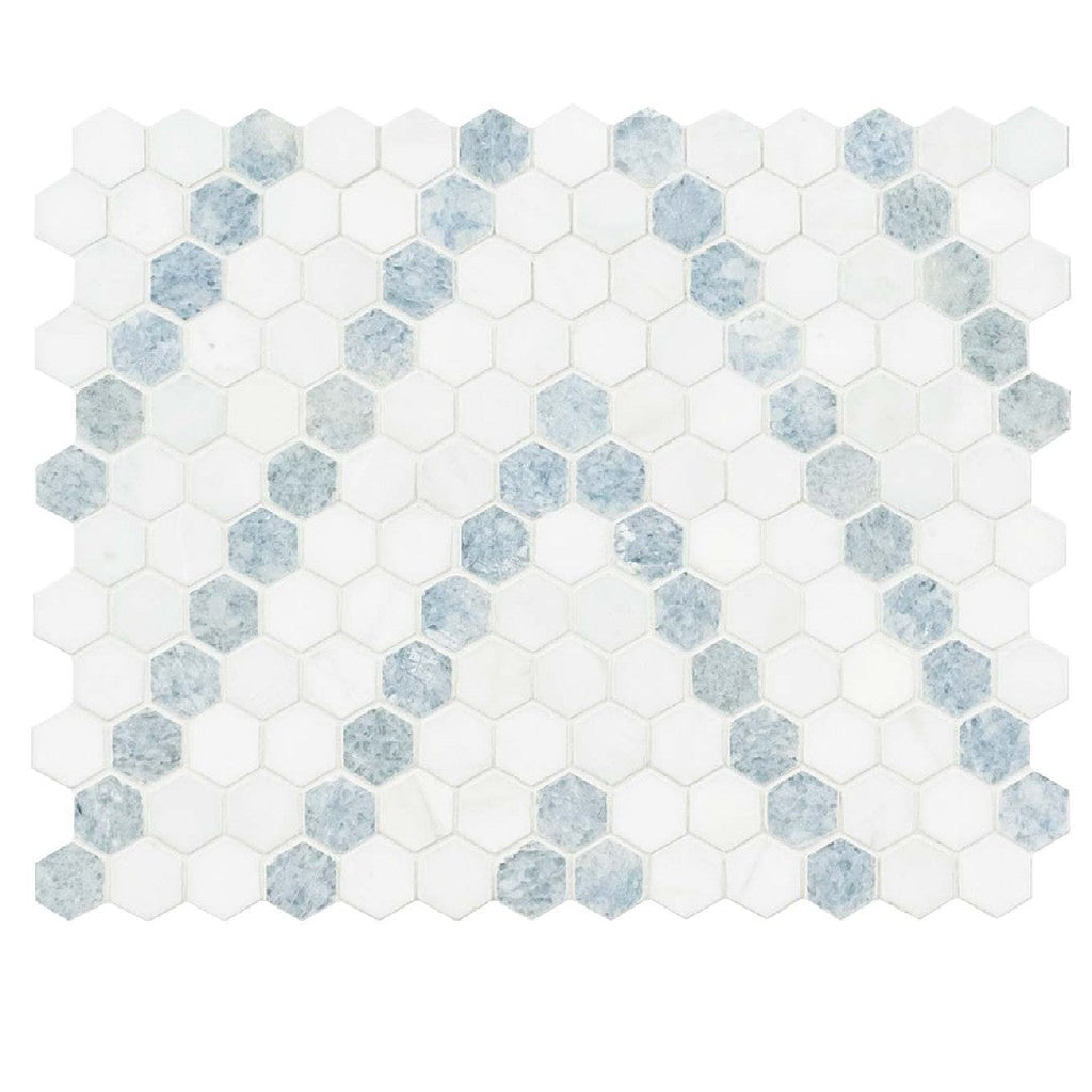 MS International Azula 10.94" x 13.74" Marble 1" Hexagon Mosaic offers geometric sophistication with its petite hexagon tiles crafted from premium natural marble. The subtle veining and polished finish highlight marble’s inherent beauty, making this mosaic perfect for bathroom floors, shower niches, and decorative borders. At 10.94" x 13.74", each mesh-mounted sheet simplifies installation and ensures uniform spacing for a professional look. Infuse modern elegance and artisan detail into your design with MS International Azula Hexagon Marble Mosaic.