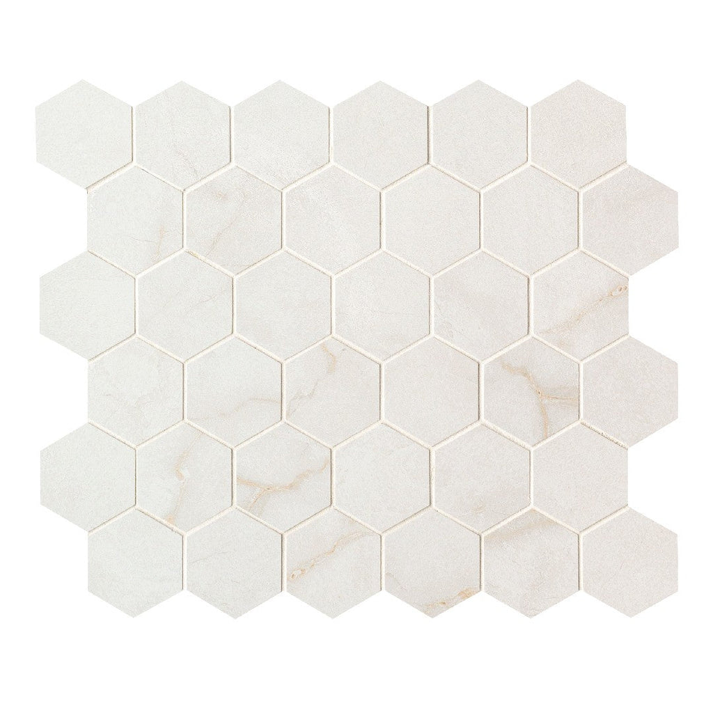 MS International Brighton 12" x 12" Polished 2" Hexagon Porcelain Mosaic offers geometric elegance with a glossy finish that enhances light and space. Ideal for bathrooms, accent walls, and feature backsplashes, it brings contemporary flair and timeless design versatility.