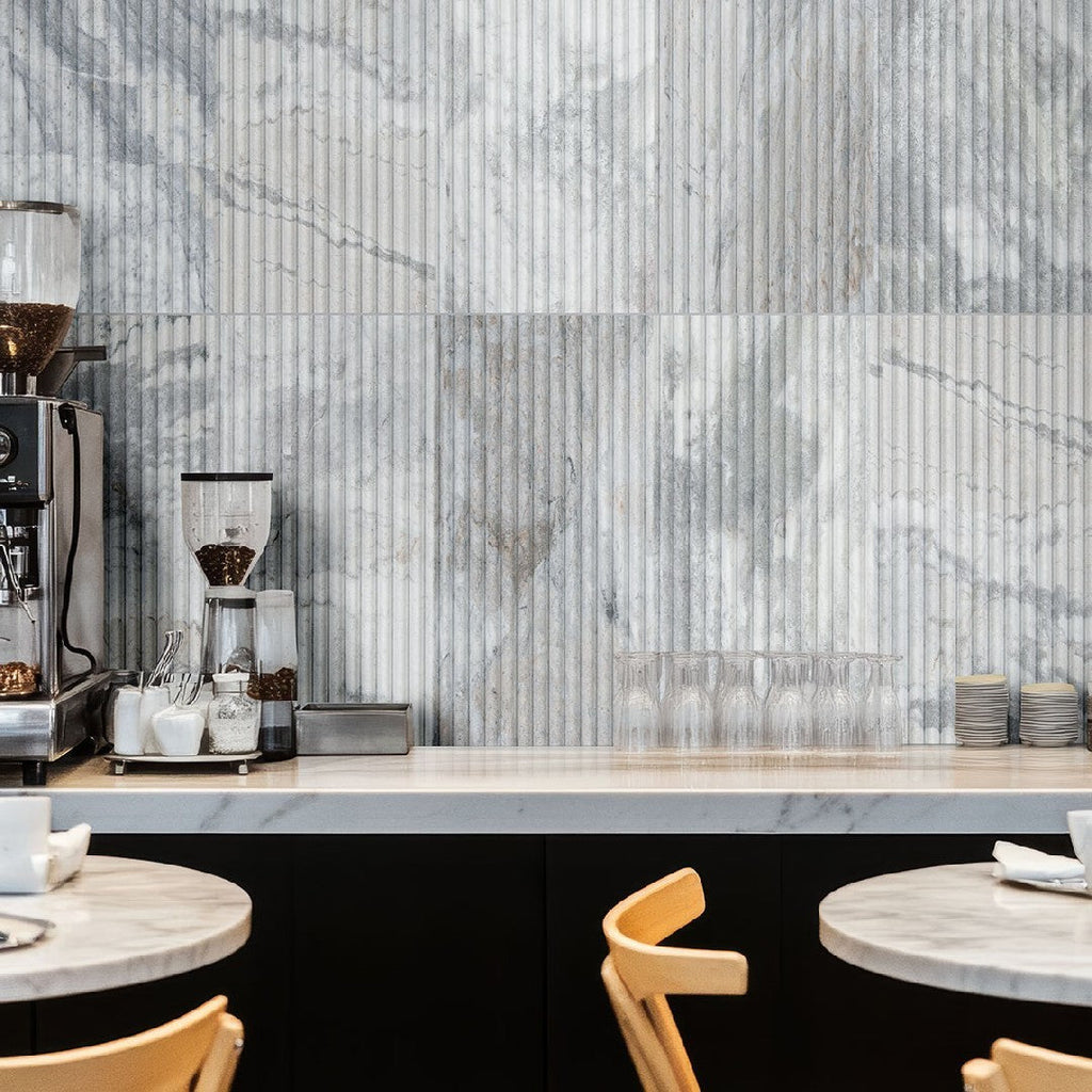 MS International Capri Blue 12" x 24" Honed Marble Fluted Tile offers a unique blend of rich color and sophisticated texture. The fluted design of this honed marble tile, measuring 12" x 24", adds a tactile and visually interesting element to any wall or fireplace surround. The beautiful Capri Blue hue provides a calming and elegant focal point, perfect for high-end interiors.