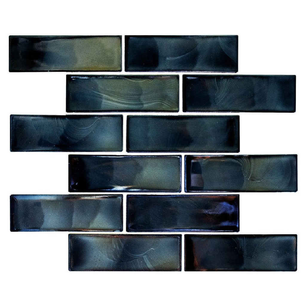 MS International Carbonita Subway 11.75" x 11.75" Brick Glass Mosaic delivers striking contrast with smoky glass tones and a classic subway pattern. This mosaic tile enhances backsplashes, accent walls, and shower surrounds with a modern, glossy finish.