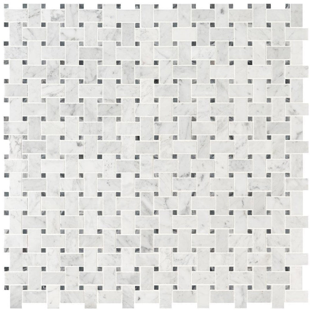 MS International Carrara White 12" x 12" Honed Basketweave Marble Mosaic brings timeless elegance to any space. Crafted from premium Carrara White marble with a honed finish, this exquisite basketweave mosaic is ideal for luxurious bathroom floors, kitchen backsplashes, or decorative wall accents, offering a classic touch and natural durability.