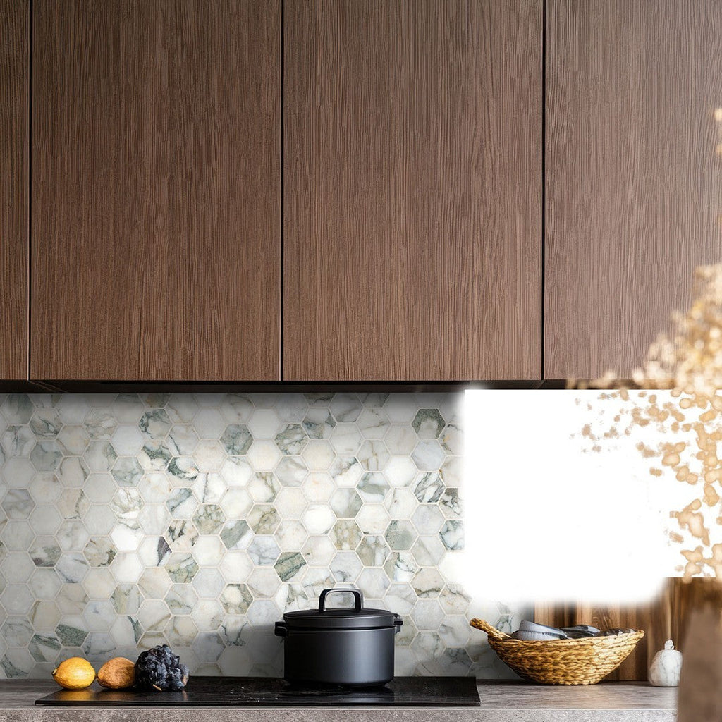 MS International Coronado 10" x 12" Honed 2" Hexagon Marble Tile offers a classic geometric pattern with a refined, matte finish. The 2" hexagon size is perfect for creating intricate designs on floors, backsplashes, and walls, while the honed marble provides a soft, elegant look. This versatile 10" x 12" mosaic sheet is an excellent choice for both traditional and modern decor.