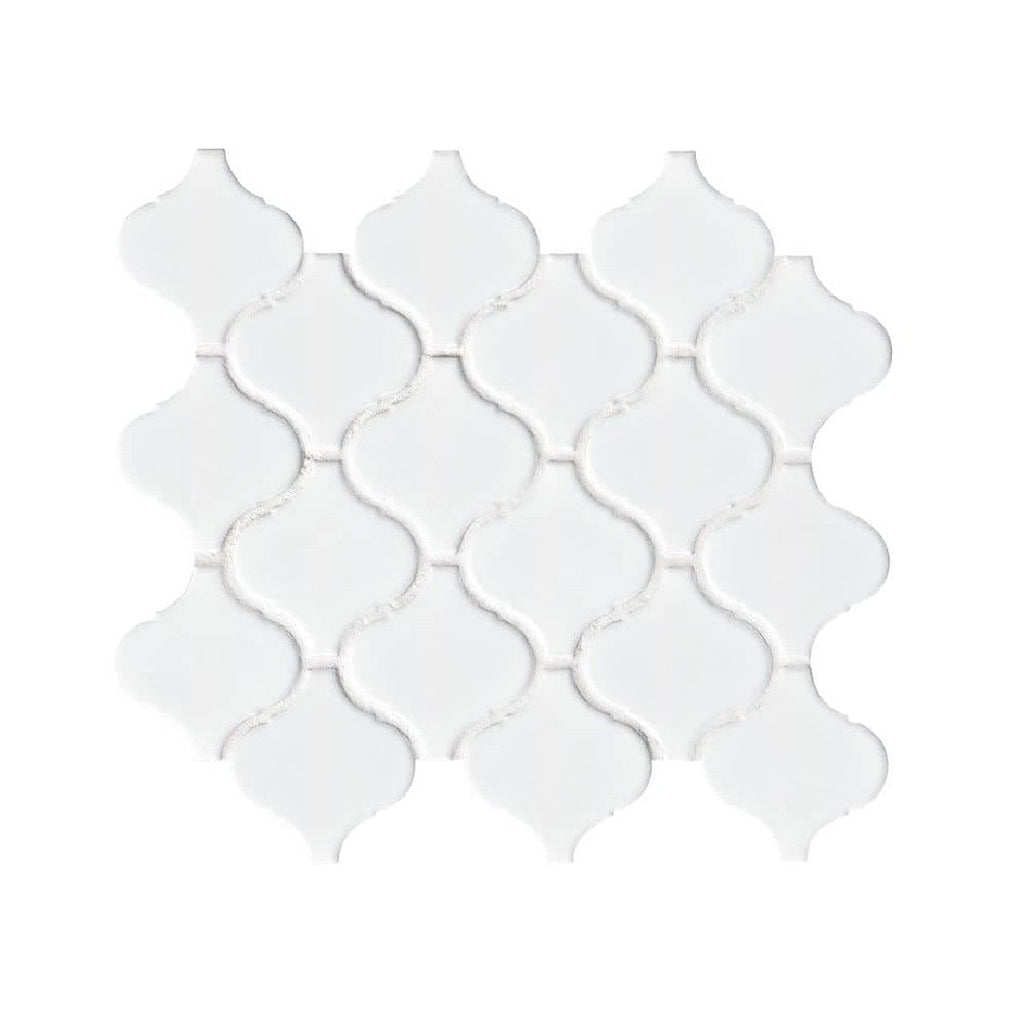 MS International Domino Retro 11.30" x 12.20" Glossy Arabesque Porcelain Mosaic presents a beautifully detailed Arabesque design with a brilliant, reflective surface. Ideal for adding a touch of classic sophistication to backsplashes or accent walls.