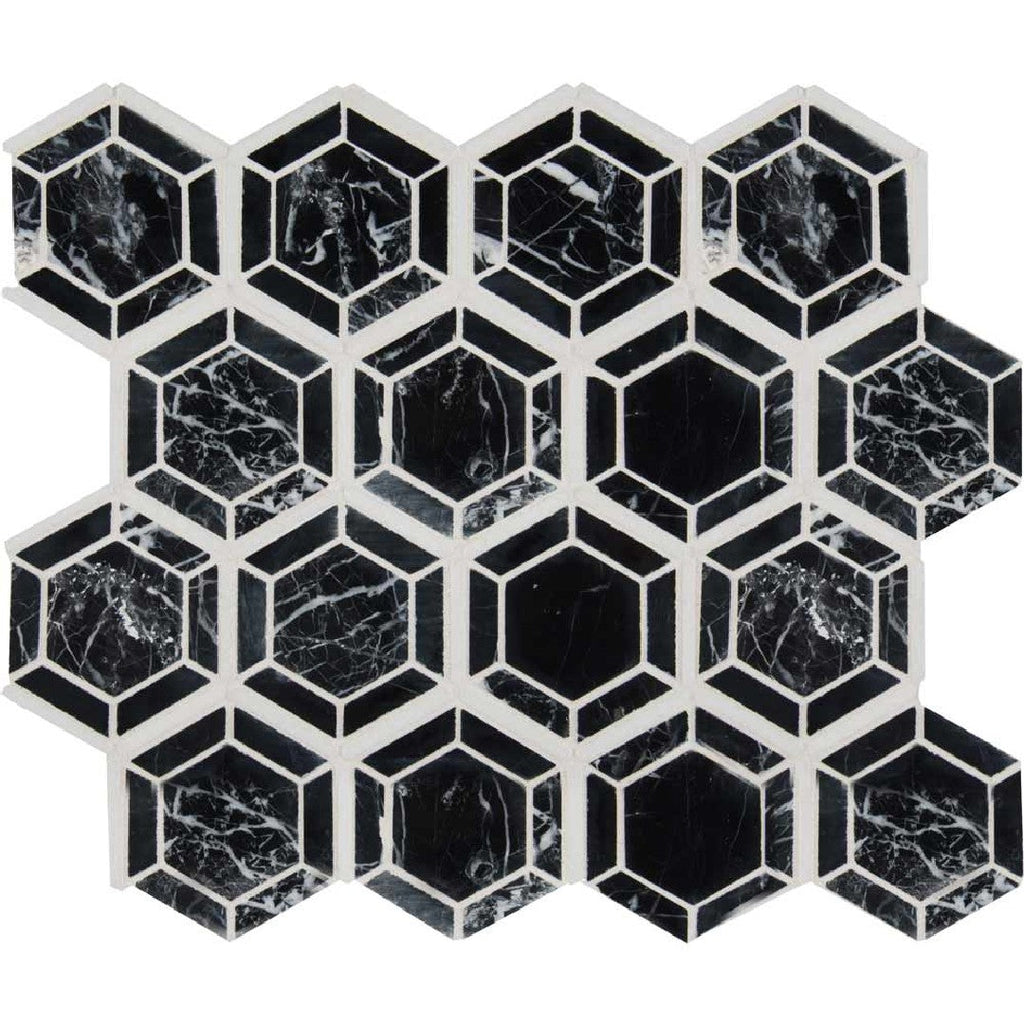 MS International Hexagono 11.50" x 13.25" Polished 2" Hexagon Marble Mosaic offers a classic 2" hexagon in beautiful polished marble. This versatile mosaic is perfect for timeless bathroom floors, stylish kitchen backsplashes, or charming fireplace surrounds, adding an enduring elegance to any space.