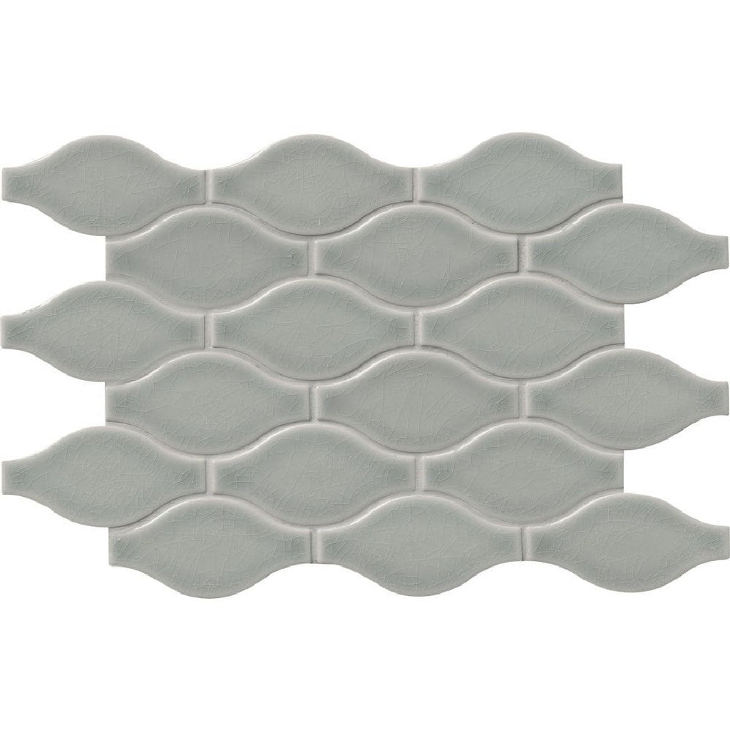MS International Highland Park 11.22" x 14.37" Glossy Ogee Ceramic Mosaic features a graceful ogee pattern in a glossy ceramic finish. This charming mosaic is ideal for adding a decorative flourish to kitchen backsplashes, bathroom walls, or shower surrounds, bringing a soft, flowing design element.