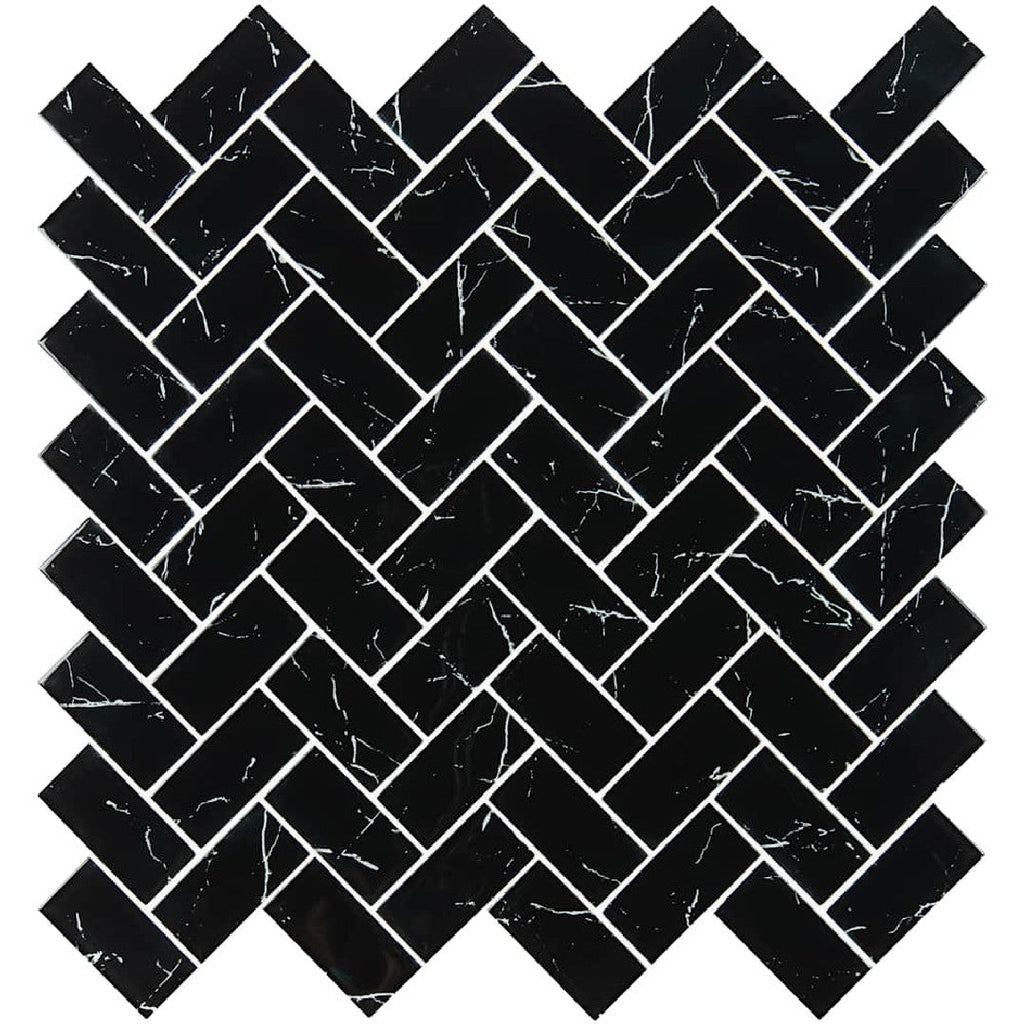 MS International Nero Marquina 11.61" x 11.81" Herringbone Glass Mosaic creates a timeless and luxurious statement with its elegant herringbone pattern and deep black glass. This exquisite mosaic is perfect for adding a touch of classic sophistication to kitchen backsplashes, bathroom walls, and feature areas.