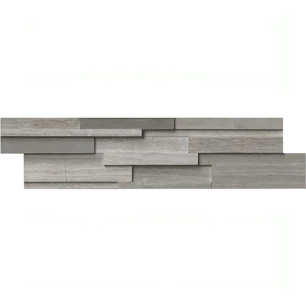 MS International RockMount Gray Oak 6" x 24" Honed Stacked Stone Panel 3D Marble Ledgestone introduces a sophisticated and tactile experience with its unique 3D profile and smooth honed finish. This versatile gray marble ledgestone is ideal for creating stunning accent walls, fireplace surrounds, or luxurious exterior features, adding modern depth and dimension.