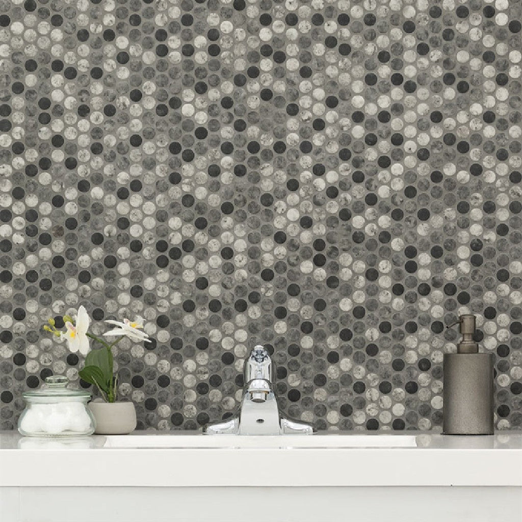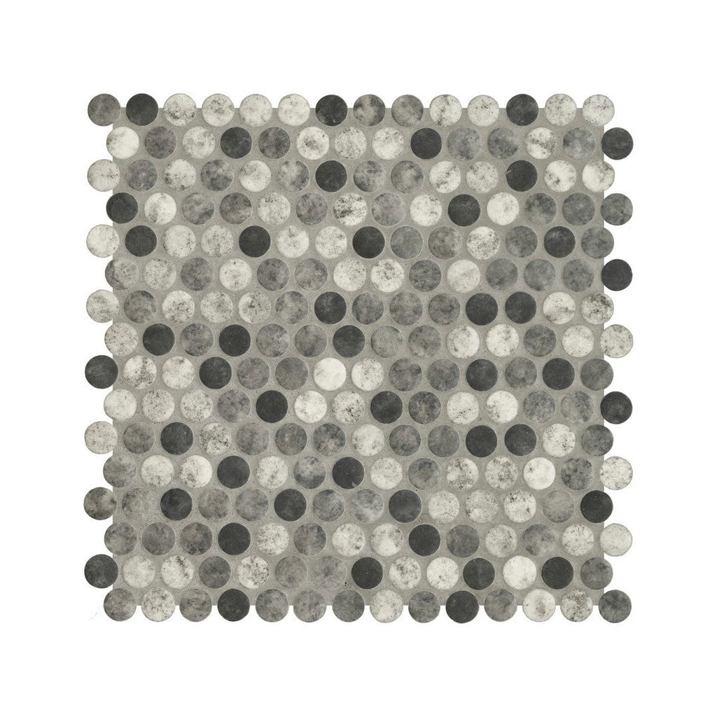 MS International Urban Tapestry 12" x 12" Penny Round Glass Mosaic is a vibrant and artistic choice for adding a pop of color and texture. The classic penny round shape is enhanced by the rich, varied colors of the glass, creating a beautiful and dynamic surface. Perfect for backsplashes, shower accents, or feature walls, this mosaic makes a stylish statement.