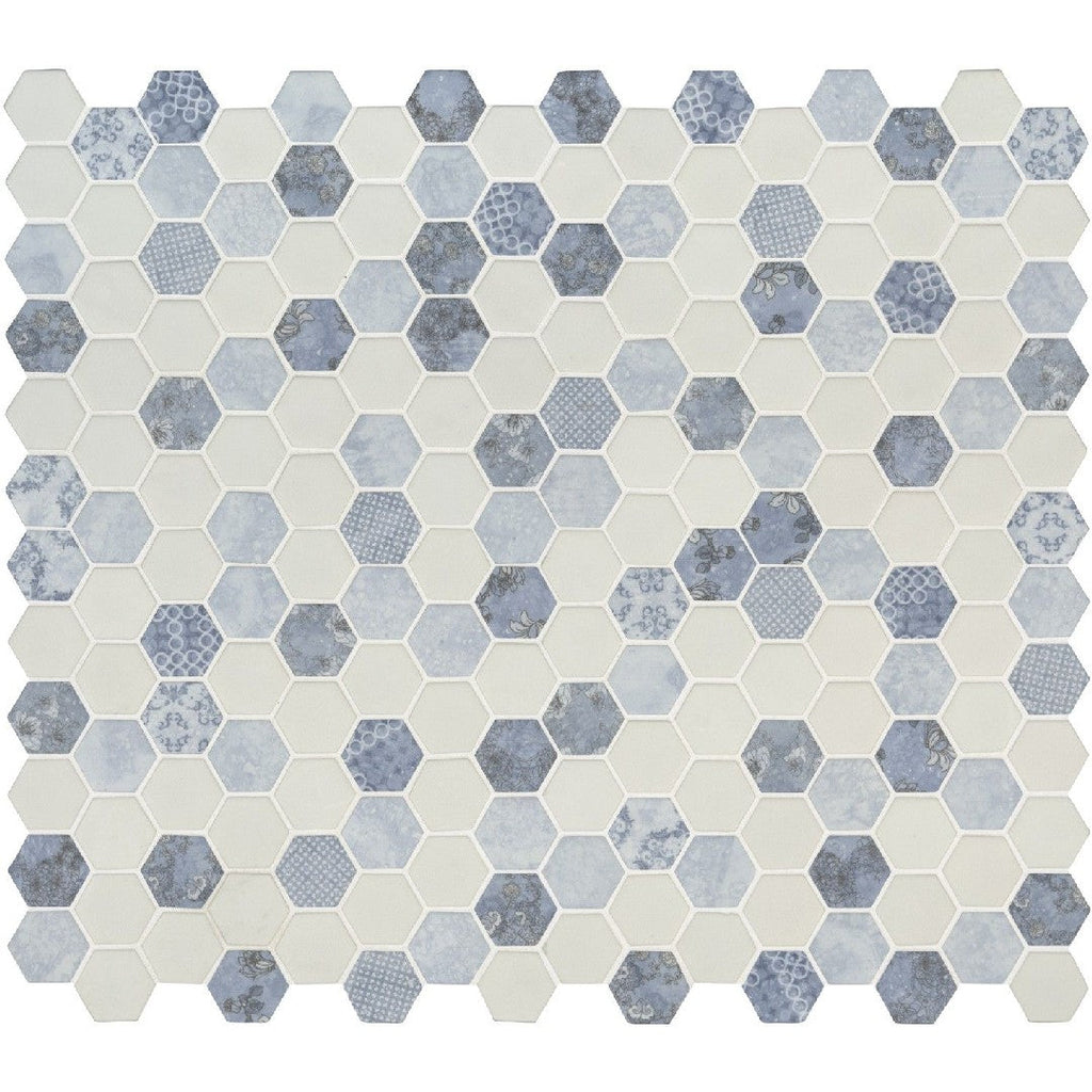MS International Vista Azul 11.9" x 11.9" Matte Hexagon 2" Glass Mosaic brings a serene and modern aesthetic to your spaces, perfect for tranquil backsplashes and shower surrounds. This matte hexagon glass mosaic combines a classic shape with a soothing color, creating a harmonious design.