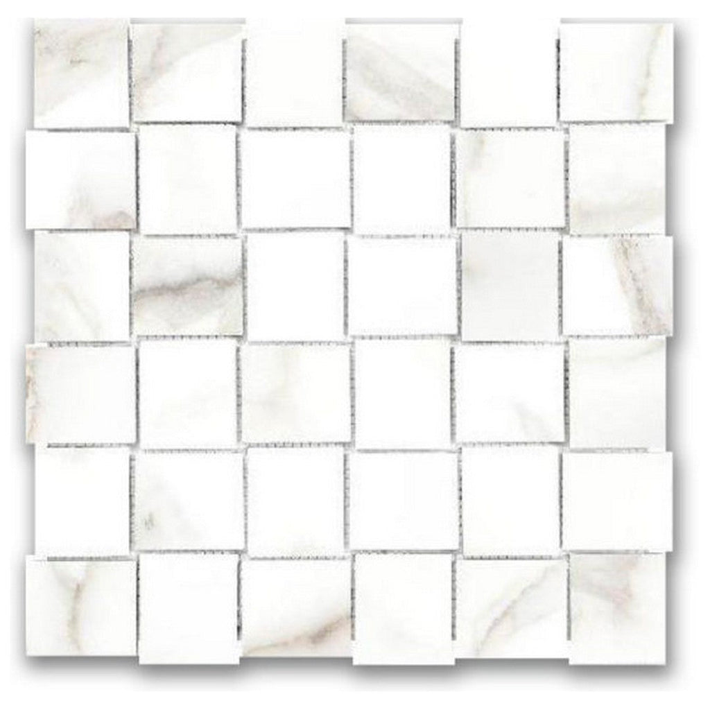 Qualis Ceramica Ardor 12" x 12" Rectified Polished Porcelain Basketweave 2" Mosaic reimagines the traditional basketweave in a glossy, refined porcelain finish. It enhances luxury interiors with depth and shine, perfect for creating accent details or decorative wall panels in sophisticated spaces.