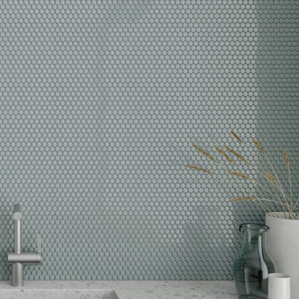 Qualis Ceramica Bliss Element 11.73x11.73 Glossy Glass Penny Round Mosaic adds timeless charm and a classic round pattern to any room. Its Glossyy glass surface amplifies light for a radiant finish. Perfect for backsplashes, shower walls, and accent spaces, this mosaic balances beauty with durability. The Bliss Element Glossy Glass Penny Round Mosaic transforms interiors with a polished, elegant look that complements both contemporary and traditional designs. Installation is easy, ensuring functional and stylish spaces with minimal maintenance.