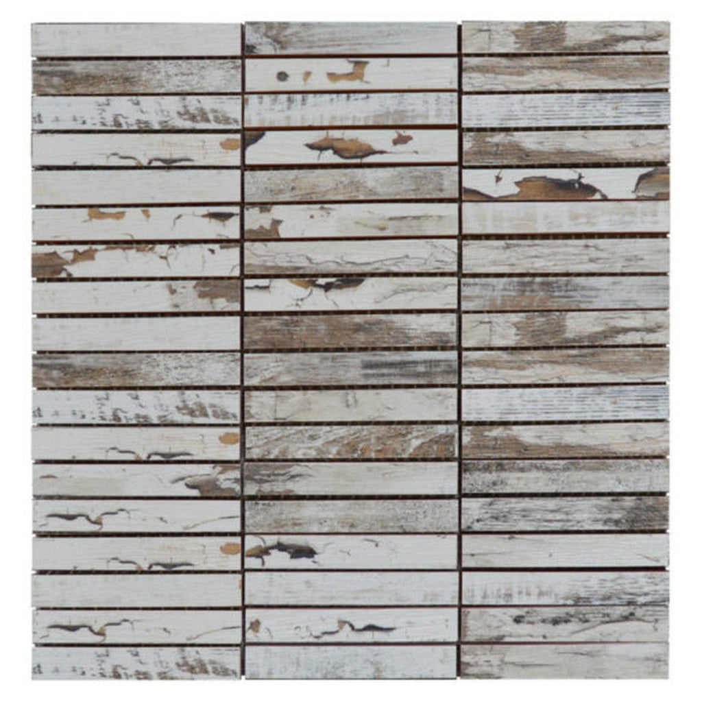 Qualis Ceramica Chelsea 12x12 Ceramic 0.7x4 Wood Rectangles Mosaic mimics natural wood textures in durable ceramic. Perfect for kitchens, bathrooms, and accent walls, it adds warm, earthy charm with easy maintenance. The Chelsea Ceramic 0.7x4 Wood Rectangles Mosaic enhances interiors with realistic wood aesthetics, durability, and modern style. Its versatile design works in contemporary and traditional spaces, offering homeowners a functional and visually appealing mosaic that combines natural beauty with long-lasting ceramic quality.