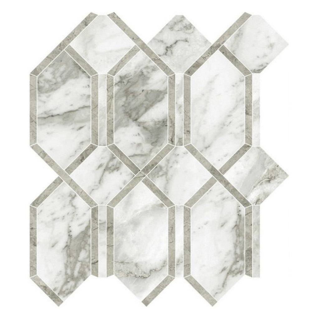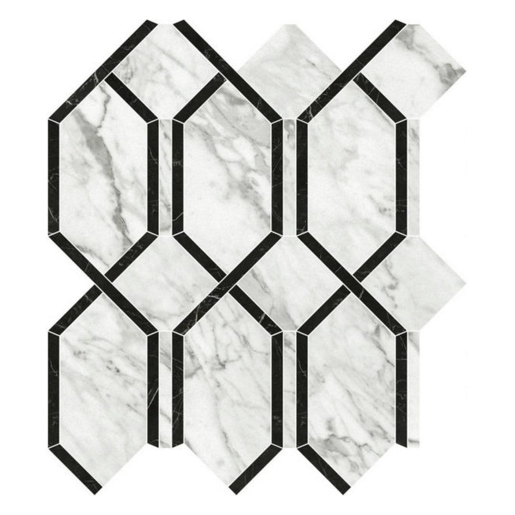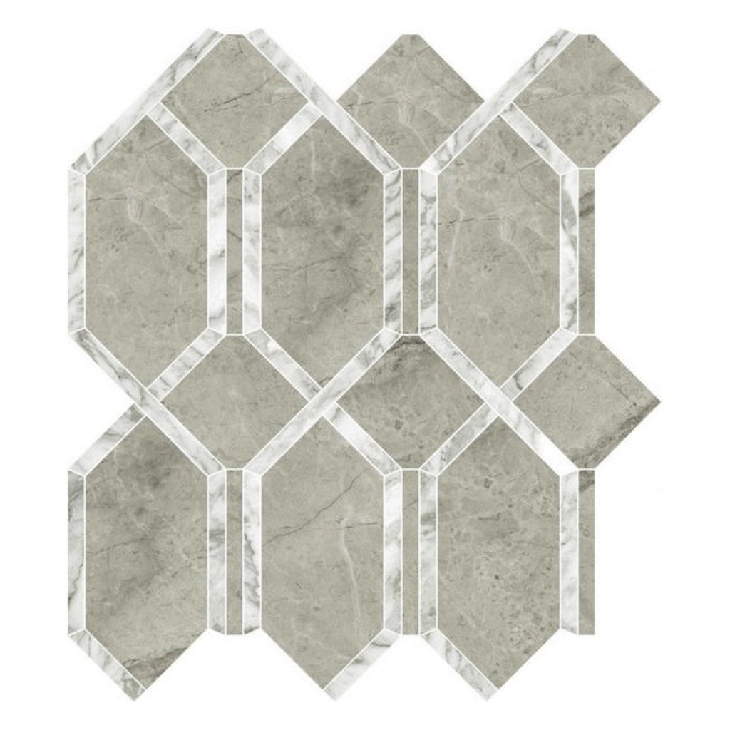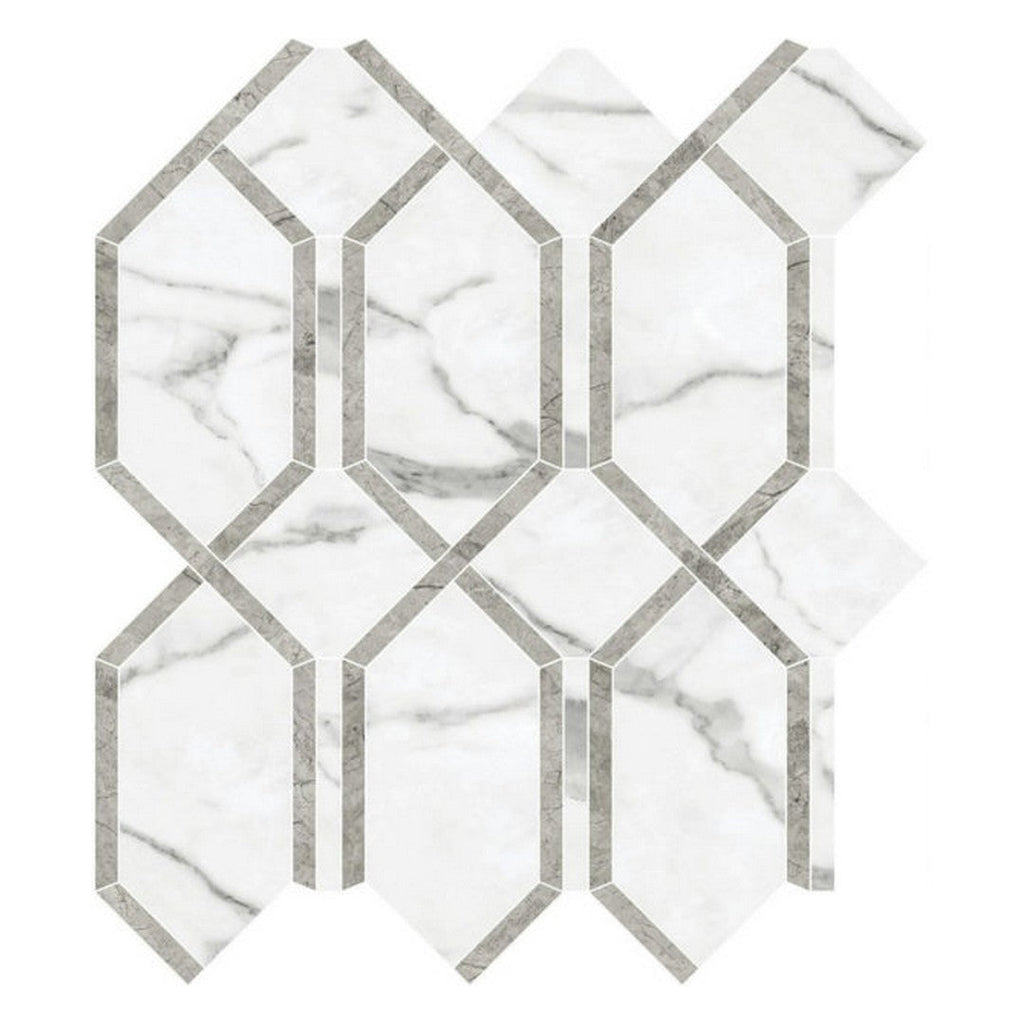 Qualis Ceramica Luxury 12" x 13" Rectified Polished Porcelain Modella Mosaic features a unique, versatile design ideal for creative wall and floor applications. The polished finish reflects light beautifully, enhancing room brightness while providing a durable, long-lasting surface.