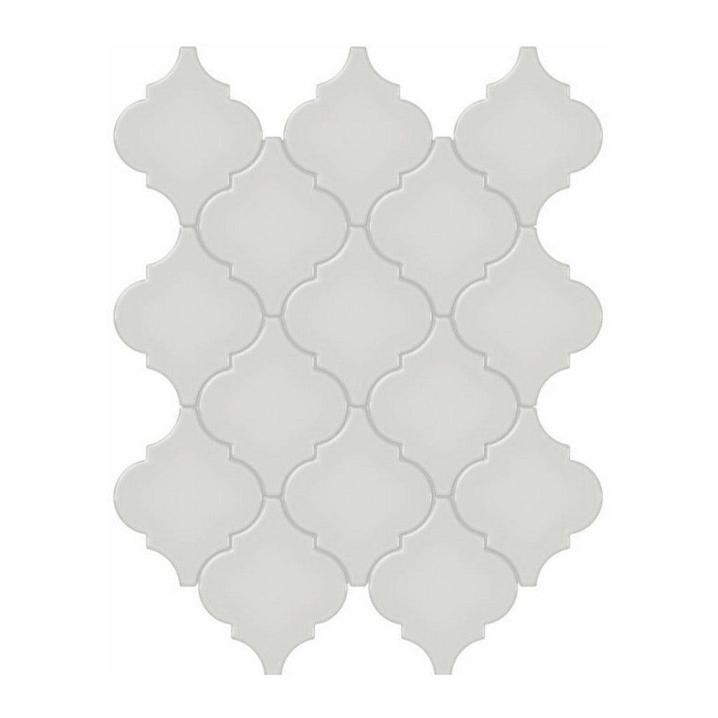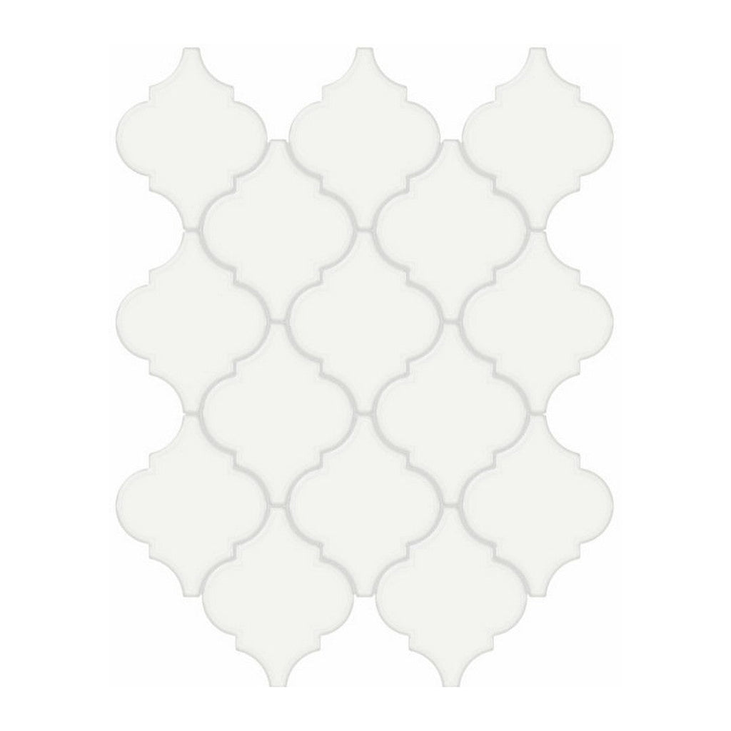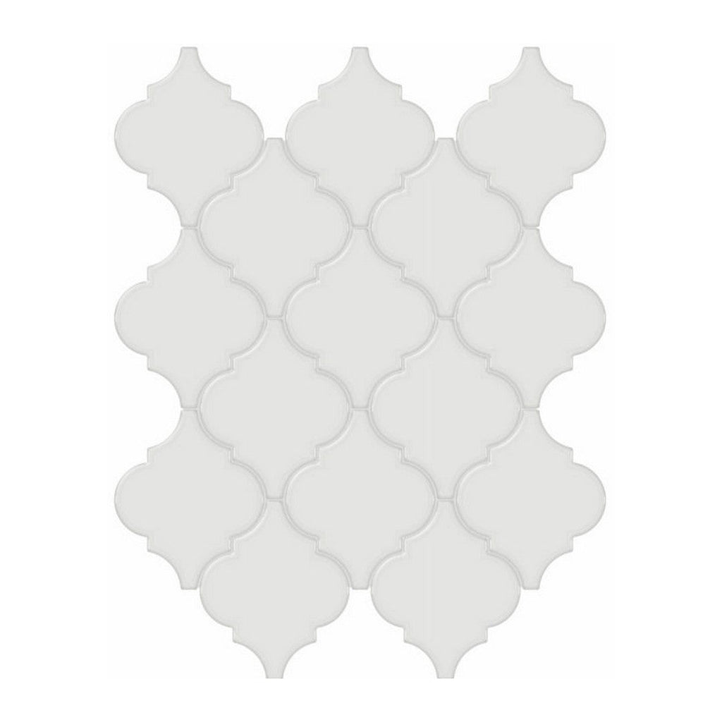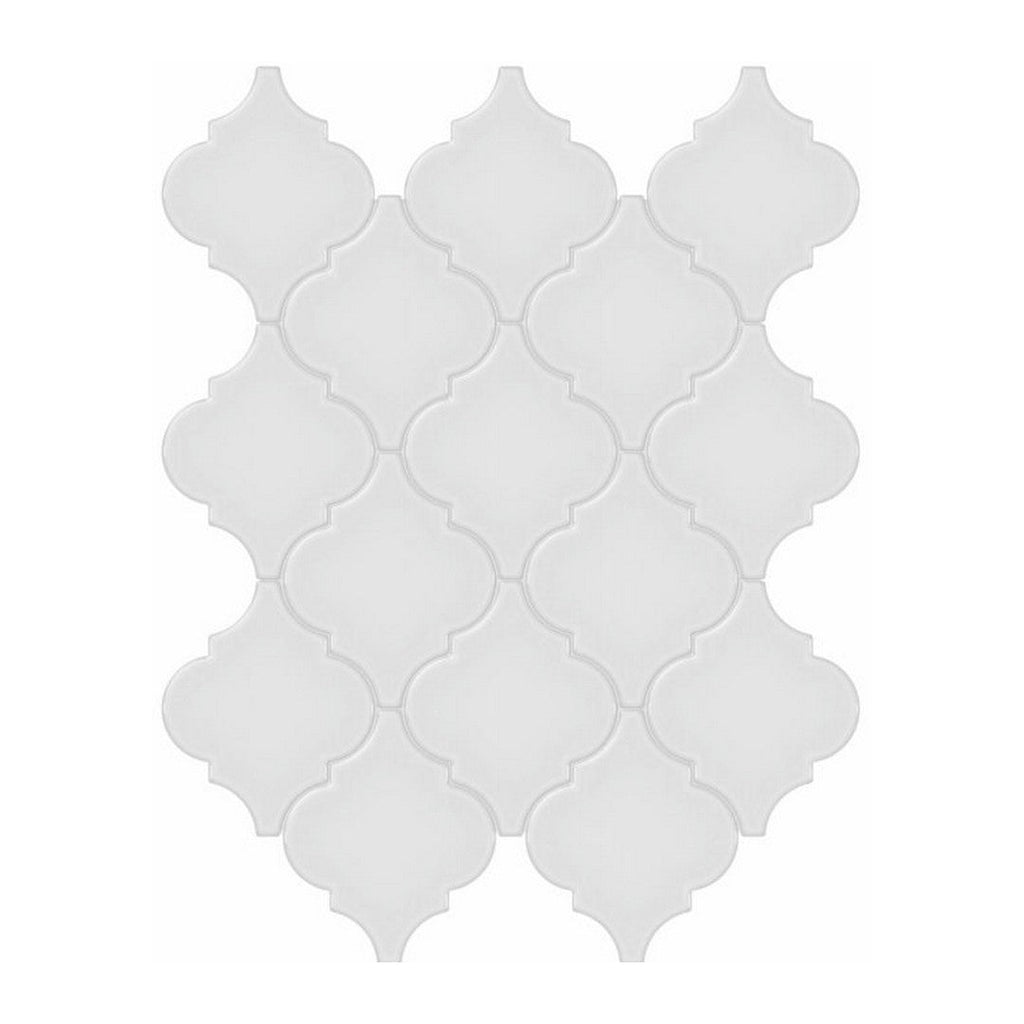 Qualis Ceramica Traditions 10.43" x 13.30" Glossy Porcelain Arabesque Mosaic delivers intricate, eye-catching patterns with a glossy finish. This mosaic is perfect for statement walls, kitchen backsplashes, or bathroom accents, combining elegance and premium-quality porcelain for long-lasting beauty.