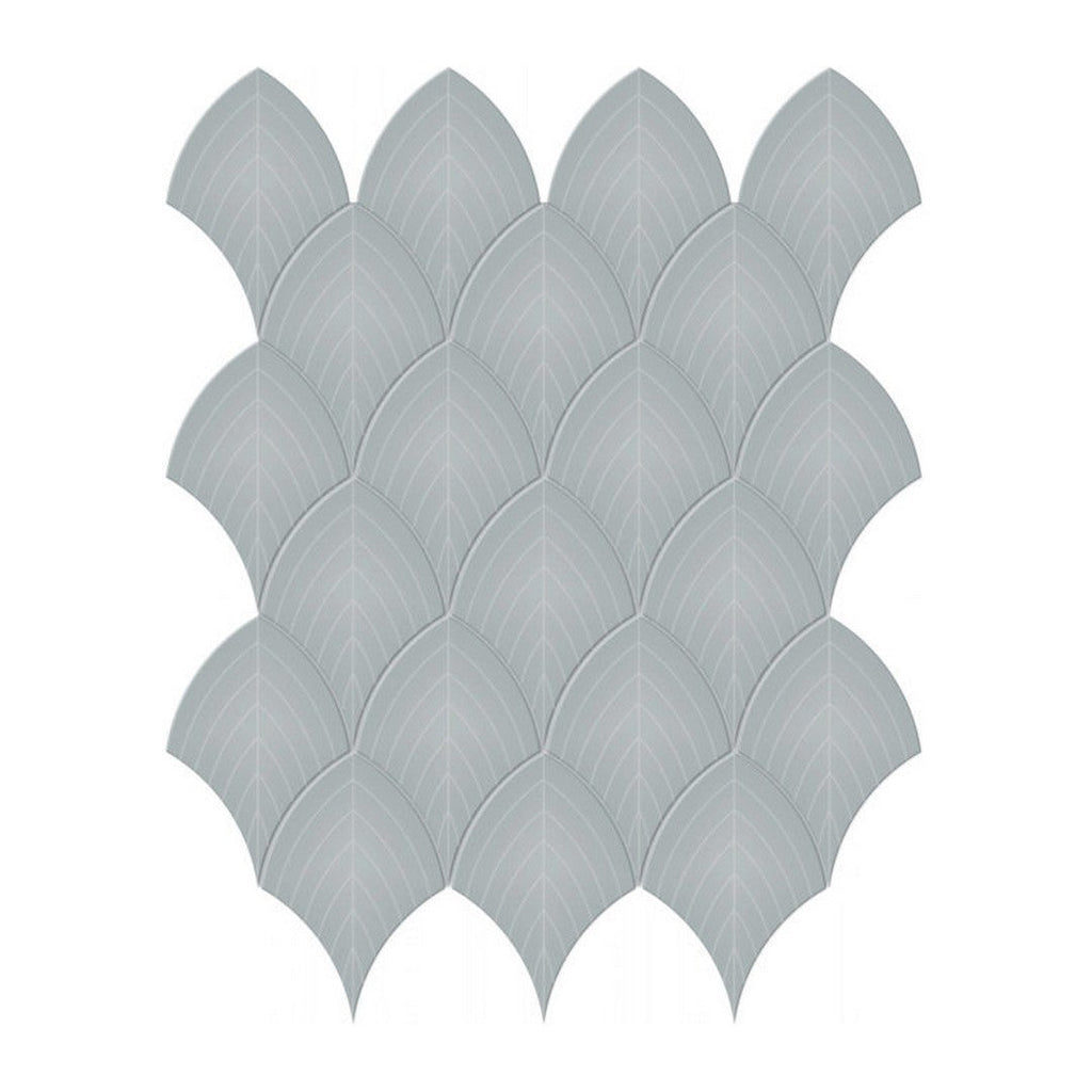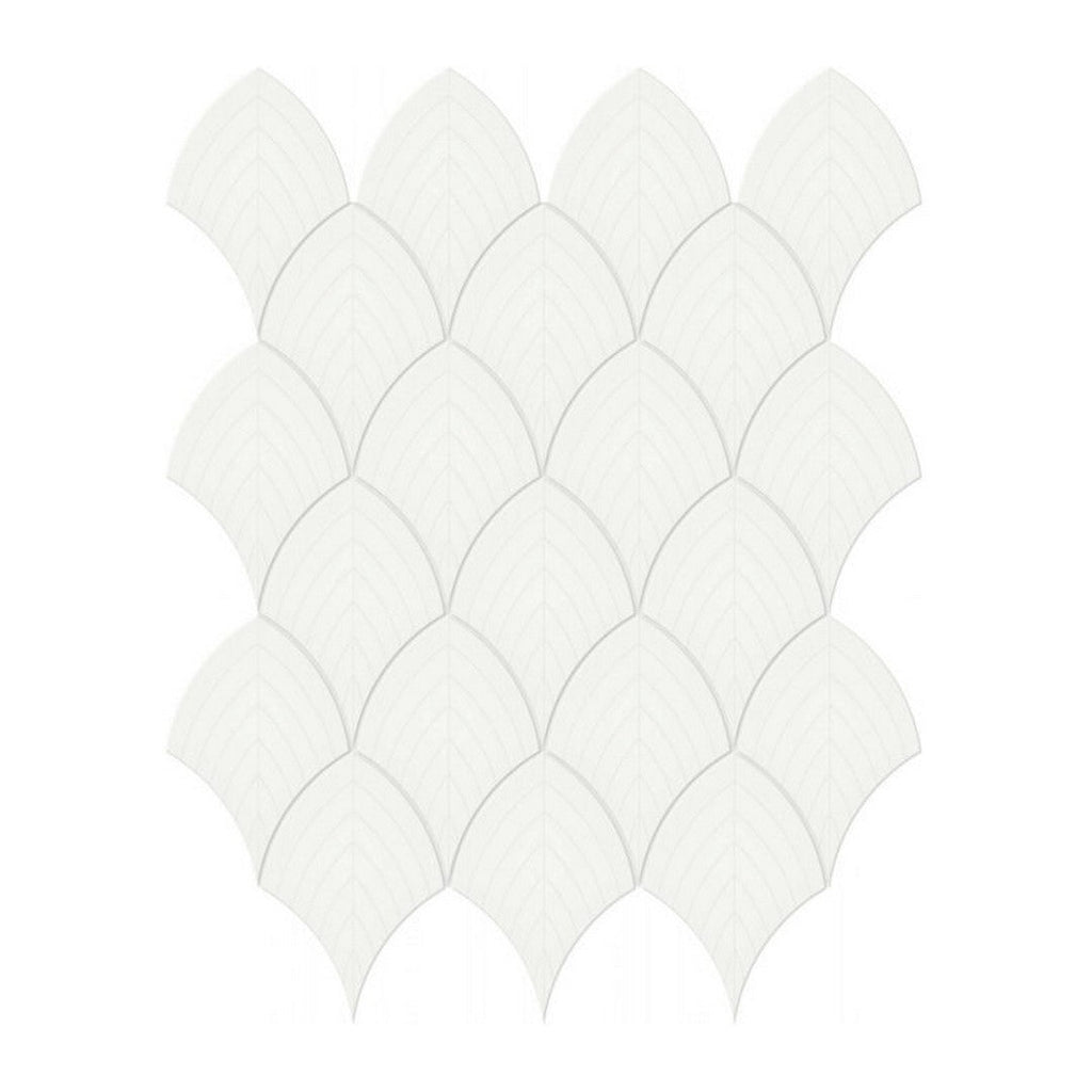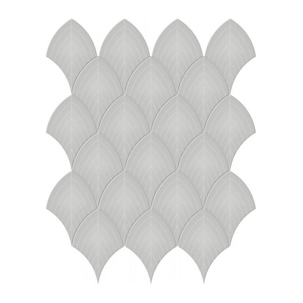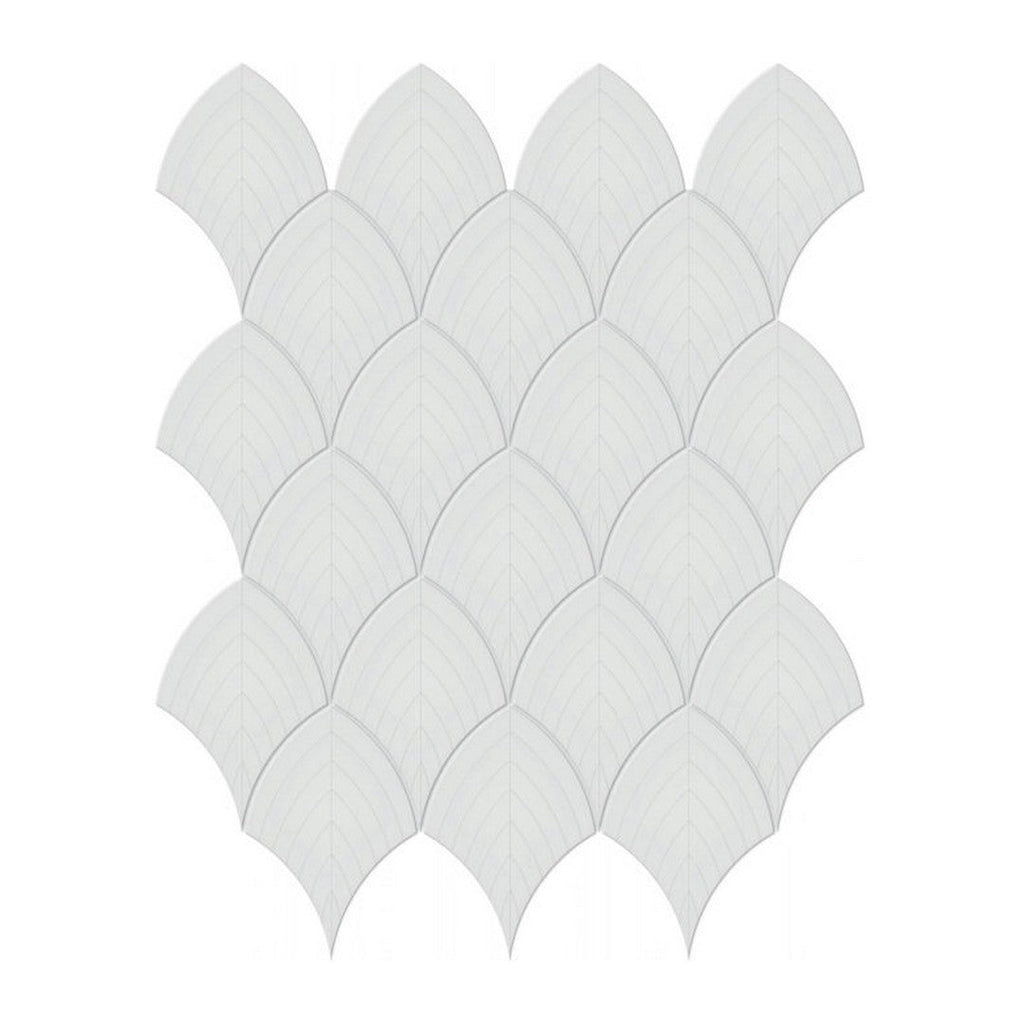 Qualis Ceramica Traditions 10.75" x 13.35" Glossy Porcelain Scallop Mosaic adds a flowing, scalloped pattern to interior surfaces. Its glossy finish reflects light beautifully, enhancing visual depth and providing a decorative, luxurious touch for walls and feature areas.