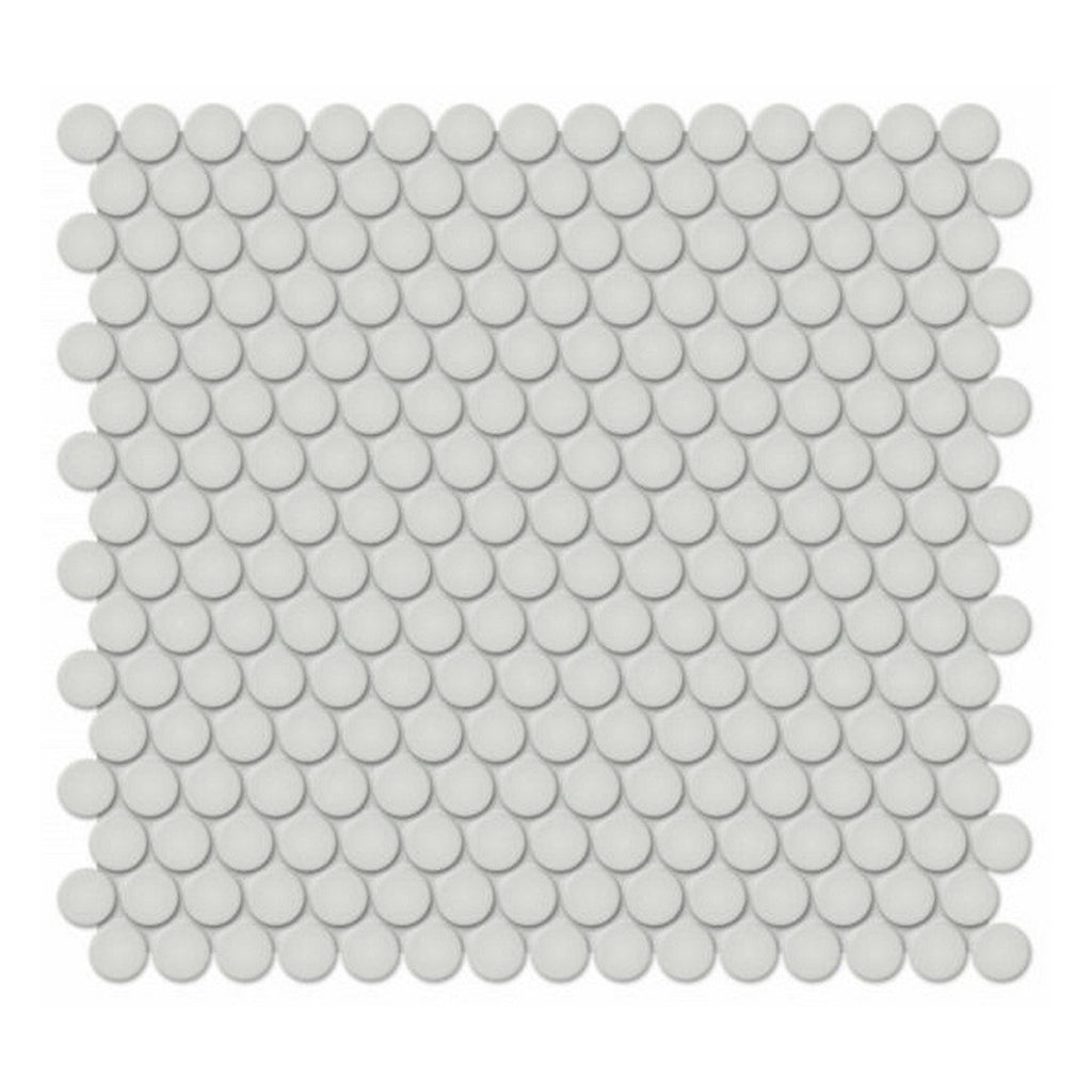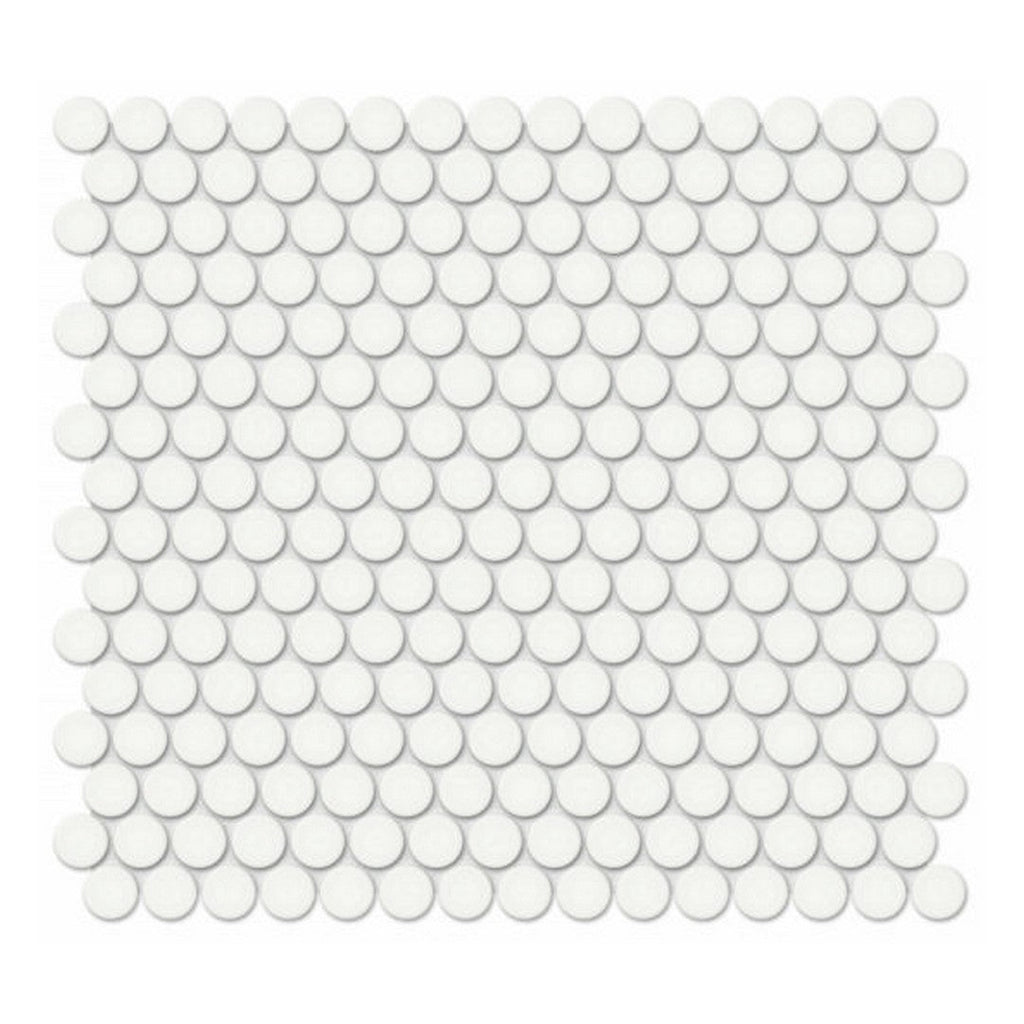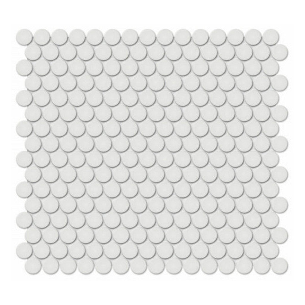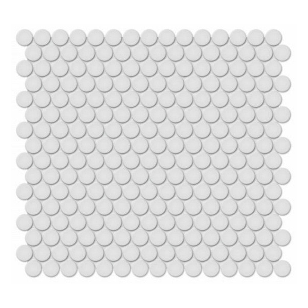 Qualis Ceramica Traditions 11.38" x 12.32" Matte Porcelain Penny Round 0.75" Mosaic provides a classic rounded mosaic design with a durable matte porcelain finish. Ideal for shower floors, bathroom walls, and accent areas, this penny round mosaic combines timeless style with modern durability, making it perfect for both residential and commercial applications.