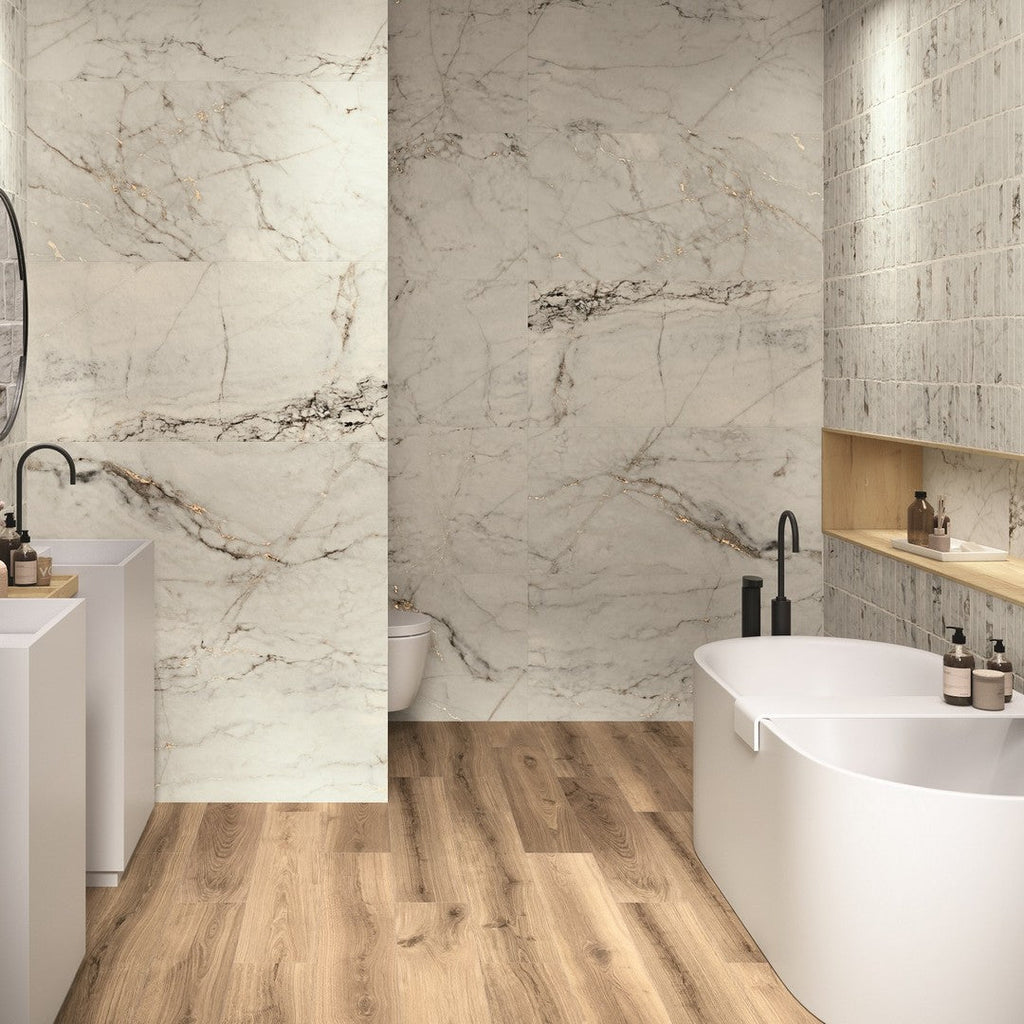 Rickert Ape Oxyd 24" x 48" Polished Porcelain Tile delivers a bold combination of durability, sophistication, and modern design. With its large format, this polished porcelain tile creates expansive, seamless surfaces ideal for floors, walls, and feature installations. The polished finish enhances the richness of the tile, offering a sleek and reflective surface that elevates both residential and commercial interiors. Its durable porcelain construction resists stains, moisture, and scratches, making it perfect for high-traffic areas while maintaining its luxurious appearance. The 24x48 size minimizes grout lines, providing a clean, sophisticated look that maximizes space and light. Ideal for contemporary homes, luxury bathrooms, and elegant living spaces, this tile adapts effortlessly to different styles and settings. Easy to maintain and designed for long-lasting performance, Rickert Ape Oxyd 24" x 48" Polished Porcelain Tile is a versatile and stylish solution for creating striking modern interiors.