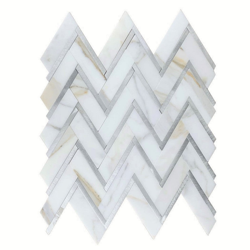 Rickert Tile Chevron 11" x 13" Polished Marble Mosaic features a dynamic chevron pattern that adds movement and sophistication to interiors. The polished marble surface reflects light, showcasing natural veining and creating visual depth. Ideal for bathroom walls, kitchen backsplashes, or feature areas, this mosaic delivers timeless elegance with a modern twist. Its durability and low maintenance make it a perfect choice for high-end residential spaces.
