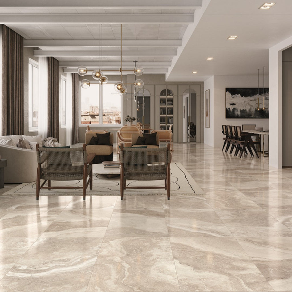 Rickert Cristal Caracalla 12" x 24" Rectified Matte Porcelain Tile brings timeless beauty and exceptional durability to any space. This versatile format is ideal for both residential and commercial interiors, offering a refined matte finish that reduces glare while enhancing natural elegance. The rectified edges allow for thinner grout lines, creating a seamless, modern look across floors, walls, or feature installations. Crafted from premium porcelain, it is resistant to moisture, stains, and daily wear, making it suitable for kitchens, bathrooms, and high-traffic areas. Its 12" x 24" size adds balance and proportion, offering a contemporary design solution that is both stylish and practical. Whether used as flooring, wall cladding, or part of a sophisticated design scheme, this tile provides the perfect blend of performance and aesthetics. Rickert Cristal Caracalla 12" x 24" Rectified Matte Porcelain Tile delivers a lasting finish that elevates interiors with ease.