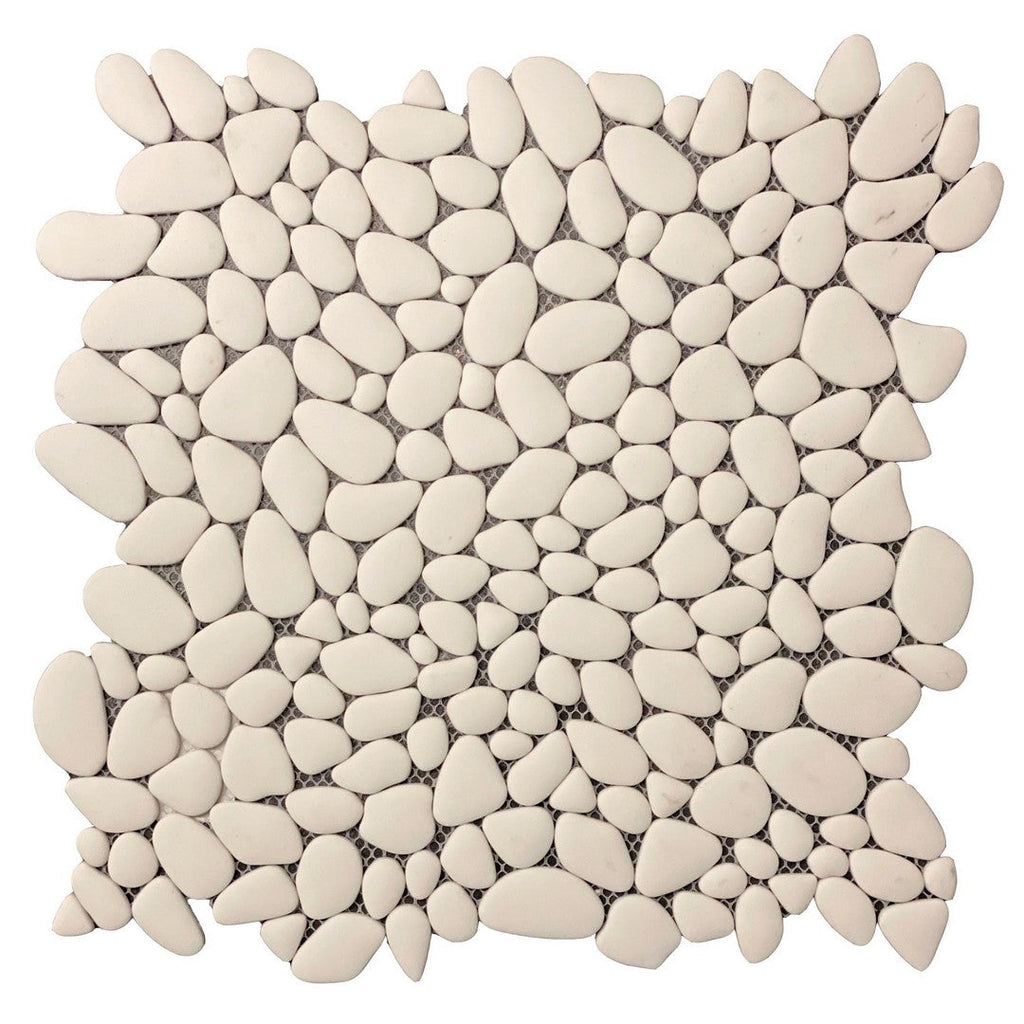 Rickert Tile Pebble 12" x 12" Matte Glass Mosaic brings organic texture and modern appeal to any space. Its smooth, pebble-shaped glass pieces feature a soft matte finish that diffuses light beautifully. Ideal for showers, accent walls, or spa-inspired bathrooms, this mosaic provides a soothing natural aesthetic. Durable and water-resistant, it’s perfect for wet areas and decorative surfaces alike. Its versatile design complements both contemporary and organic decor themes.