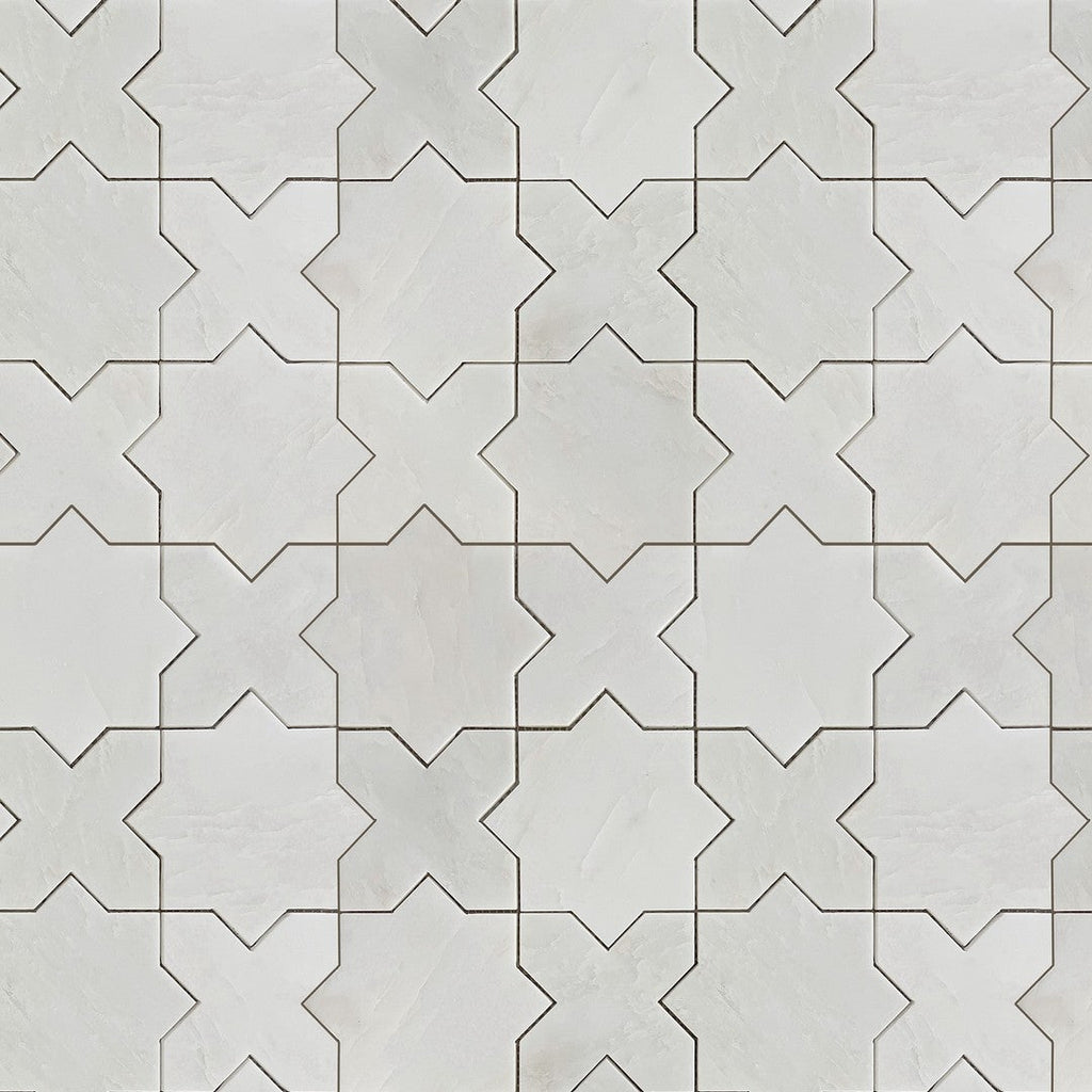 Rickert Tile Star & Cross 11.97" x 11.97" Honed Porcelain Mosaic combines classic Moroccan-inspired patterns with modern durability. The honed finish provides a soft, elegant touch suitable for both walls and floors. Its intricate star and cross shapes create eye-catching designs, ideal for feature walls, kitchens, and bathrooms. This mosaic is easy to maintain, slip-resistant, and versatile enough for contemporary or traditional settings, bringing a refined aesthetic to any space.