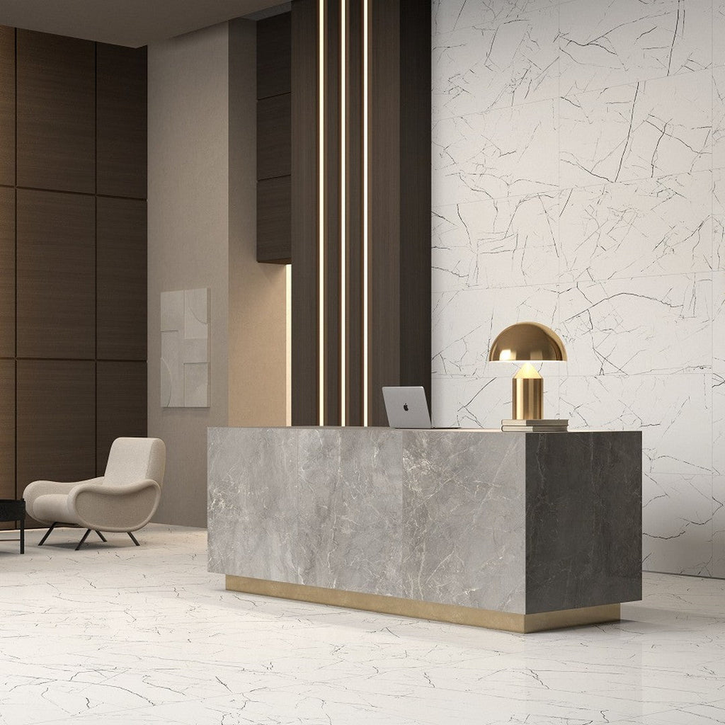 Rickert Unicom Starker Muse 12" x 24" Porcelain Polished Tile brings refined elegance and luxurious style to interior spaces. With its polished finish, this porcelain tile reflects light beautifully, enhancing the atmosphere of living rooms, bathrooms, and commercial settings. The 12" x 24" size offers flexibility in design, allowing for sleek, modern layouts with fewer grout lines for a seamless look. Inspired by natural stone, the Muse collection features sophisticated veining and subtle variation, adding depth and richness to any installation. Crafted from premium porcelain, it resists stains, water, and heavy wear, making it a practical yet stylish choice for high-traffic areas. Ideal for floors, walls, and statement designs, this polished tile elevates interiors with timeless beauty and durability. Rickert Unicom Starker Muse porcelain polished tile provides an exquisite balance of functionality and luxury, making it a perfect choice for modern and classic spaces alike.