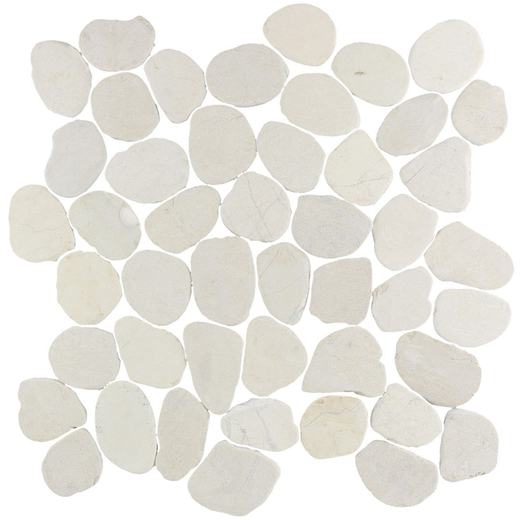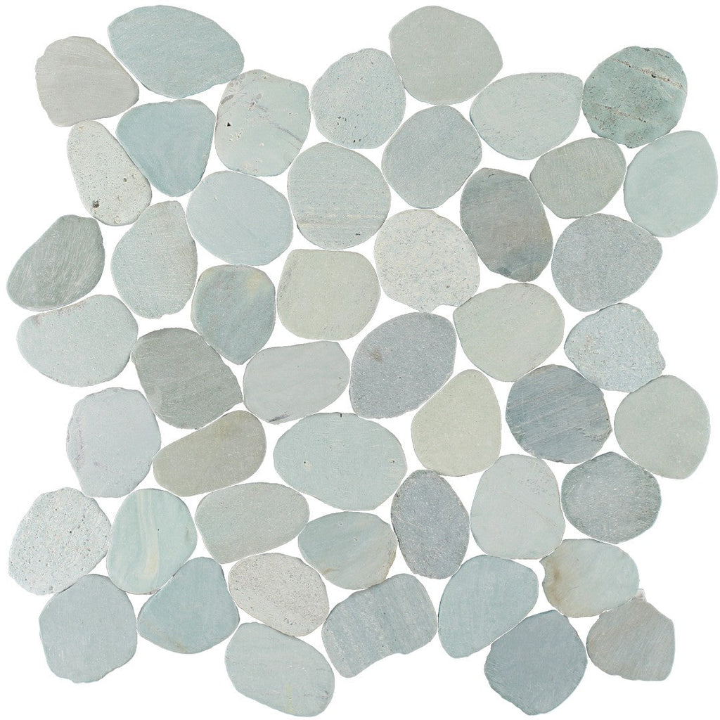 Tesoro Beachstones 11.75" x 11.75" Interlocking Sliced Natural Stone Mosaic creates a unique, organic floor or wall feature that evokes the serenity of a natural beach. This beautiful 11.75x11.75 interlocking natural stone mosaic uses sliced stones for a smooth yet textured surface, perfect for shower floors or stunning bathroom accents. Bring the outside in with Tesoro Beachstones natural stone mosaic.