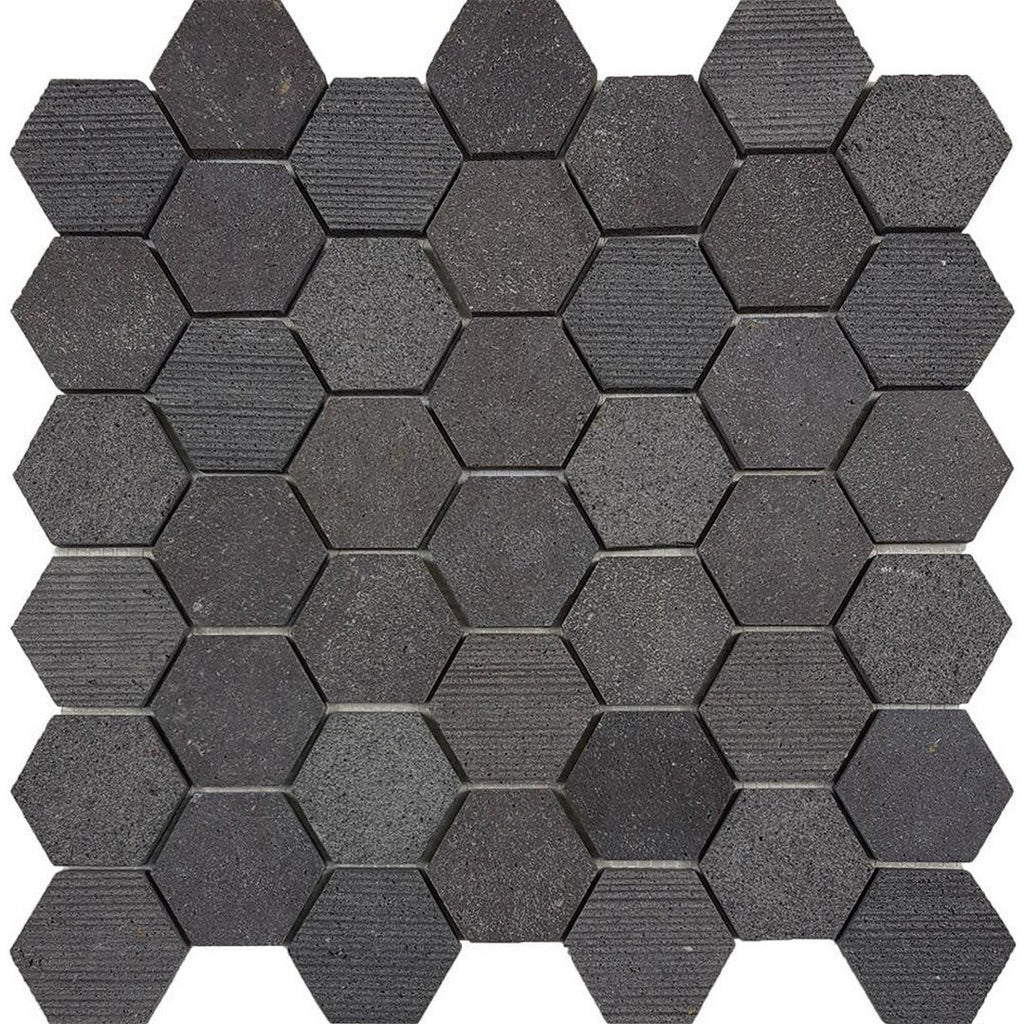 Tesoro Contempo 11.75" x 12" Multi 2" Hexagon Natural Stone Mosaic provides a refined and intricate pattern. The smaller 2-inch hexagon size in this natural stone mosaic creates a delicate and detailed surface, perfect for backsplashes and feature walls. The blend of various stone tones adds depth and visual interest, making it a beautiful focal point. Discover the sophisticated beauty and enduring quality of this Tesoro 2-inch hexagon mosaic.