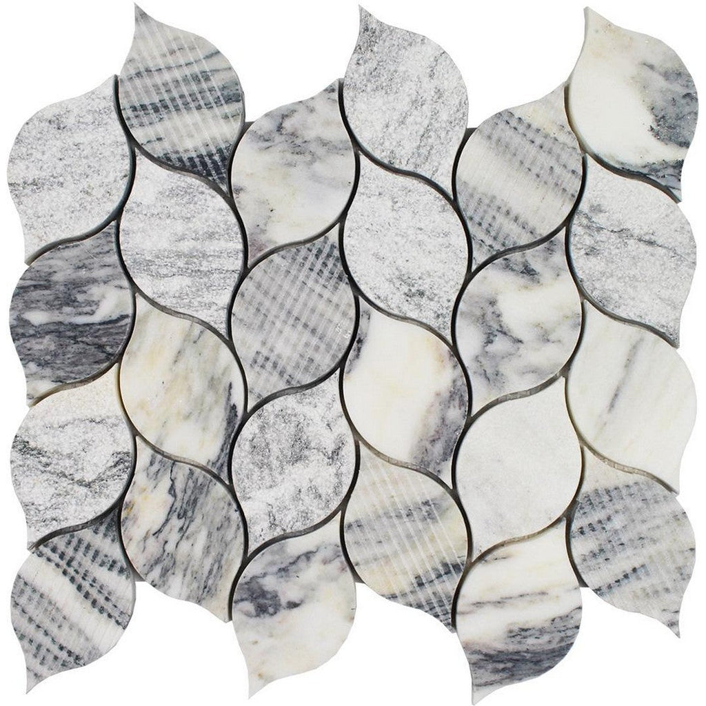 Tesoro Contempo Oasis 12.25" x 10.5" Multi Leaf Natural Stone Mosaic brings the beauty of nature into your home. This exquisite natural stone mosaic tile features a delicate leaf pattern, adding a serene and refined element to any room. Perfect for kitchen backsplashes and bathroom walls, this mosaic creates a tranquil and stylish atmosphere. Create a sophisticated and organic design with this beautiful Tesoro Contempo Oasis leaf mosaic.