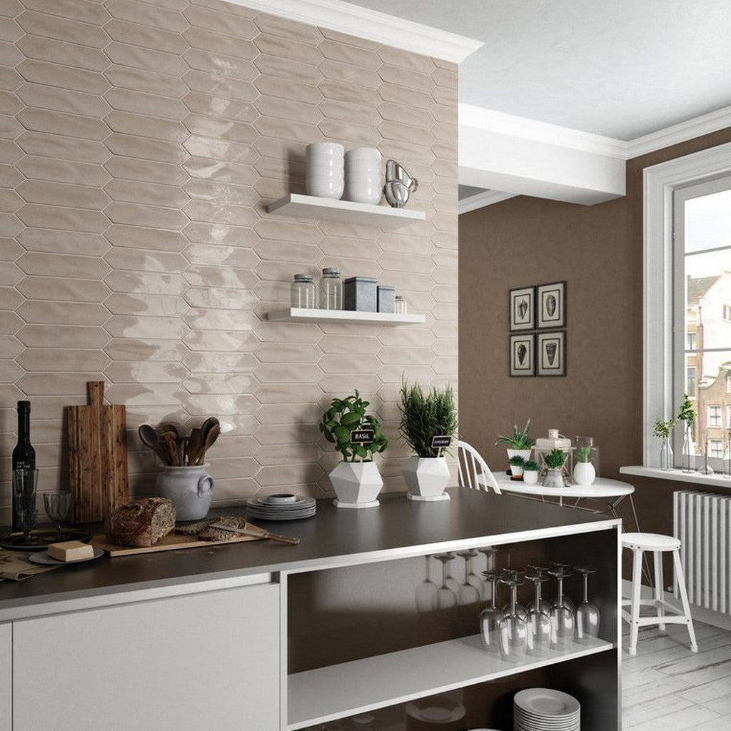 Tesoro Crayons 3" x 12" Pressed Glossy Ceramic Picket Wall Tile: Add a unique, artistic touch to your walls with Tesoro Crayons 3" x 12" pressed glossy ceramic picket wall tile. Its elongated hexagon shape and glossy finish create a dynamic, modern look that is perfect for backsplashes and accent walls. This high-quality ceramic tile is easy to clean and adds a vibrant pop of color to any room.