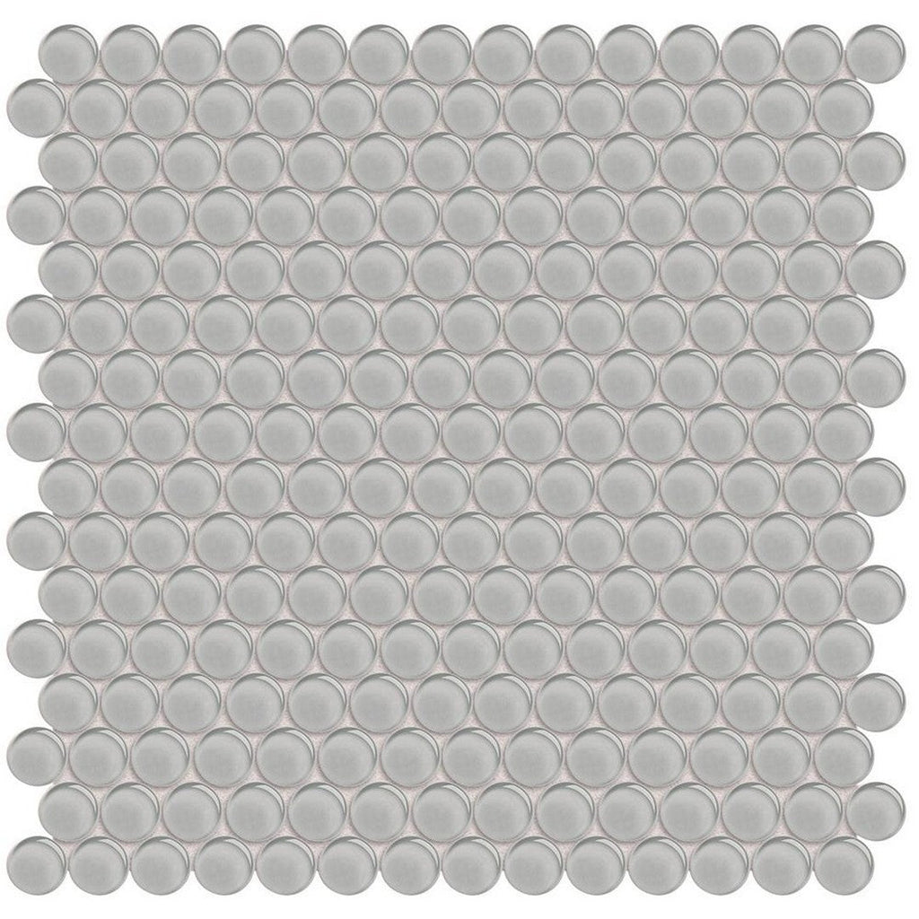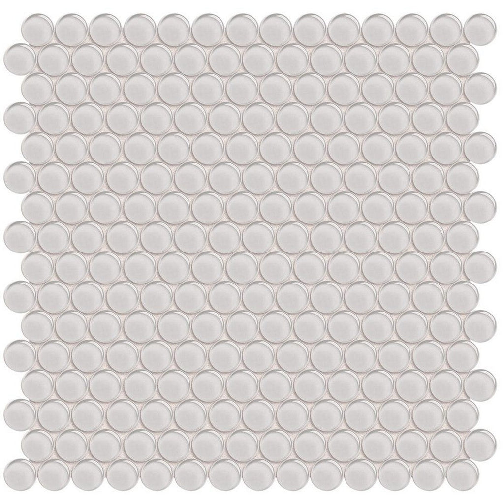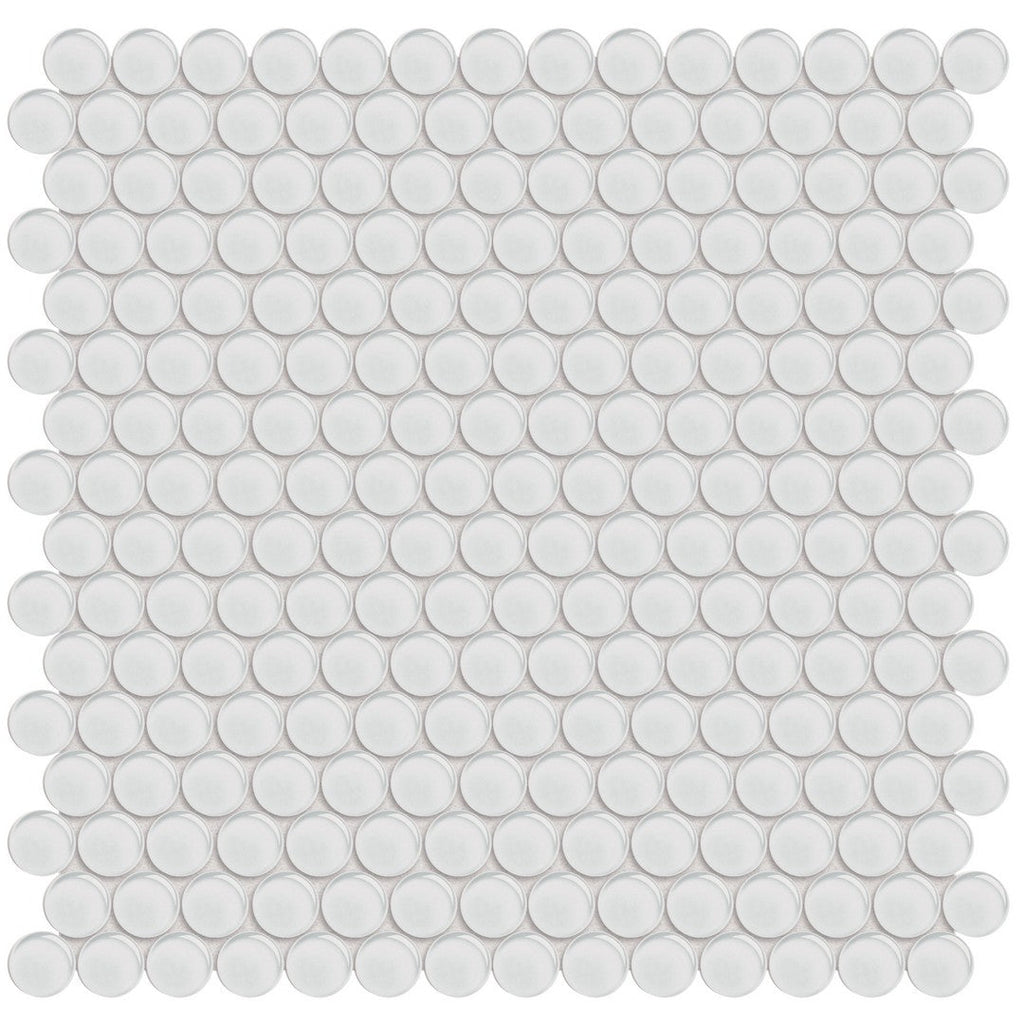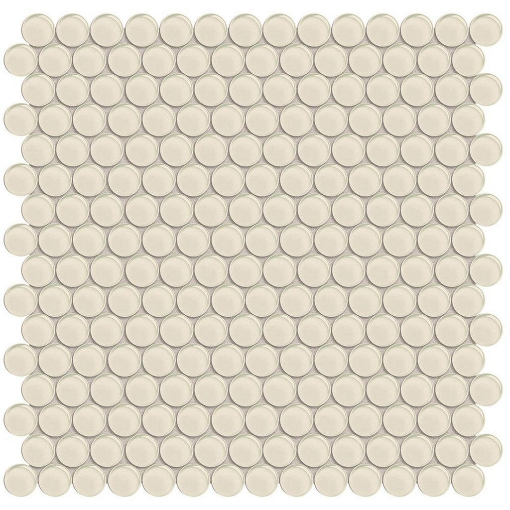 Tesoro Element 11.50" x 11.75" Interlocking Penny Round Glass Mosaic is a fun and retro-inspired option for a stylish backsplash or accent wall. The classic penny round pattern, reimagined in a durable interlocking glass mosaic, creates a timeless and whimsical feel. This popular glass mosaic tile is perfect for adding texture and visual interest to any room.