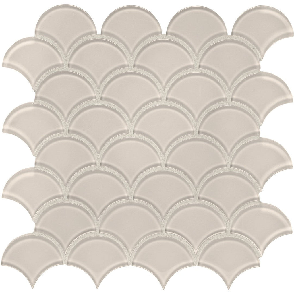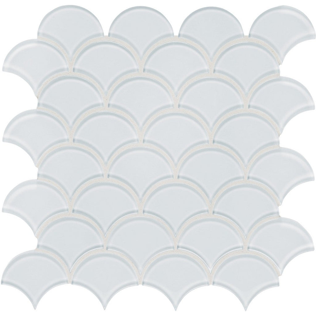 Tesoro Element 11.75" x 11.75" Interlocking Scallop Glass Mosaic is a beautiful and whimsical choice for a unique design. The delicate scallop pattern, in a durable glass mosaic, adds a soft, curved element to your walls. This interlocking glass tile is ideal for creating a serene and elegant backsplash or feature wall, providing a sophisticated and unique look.