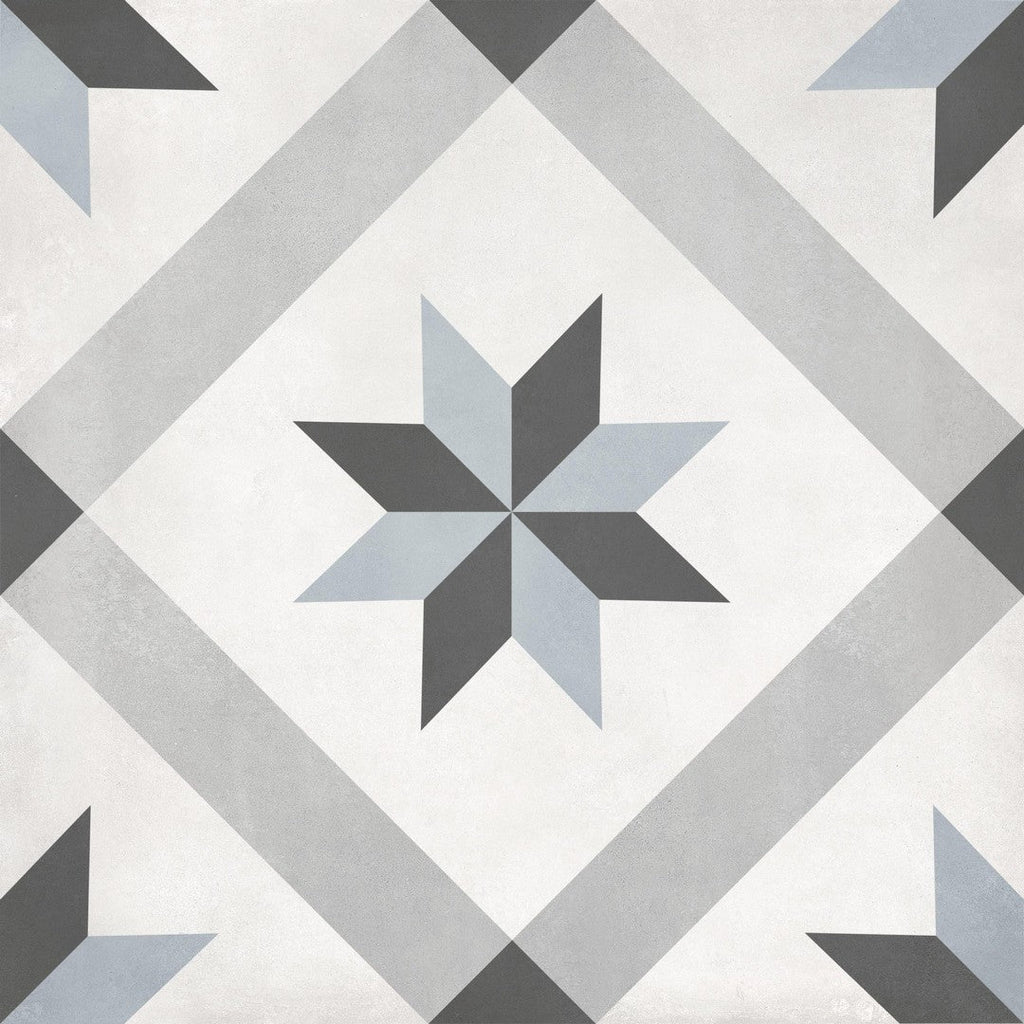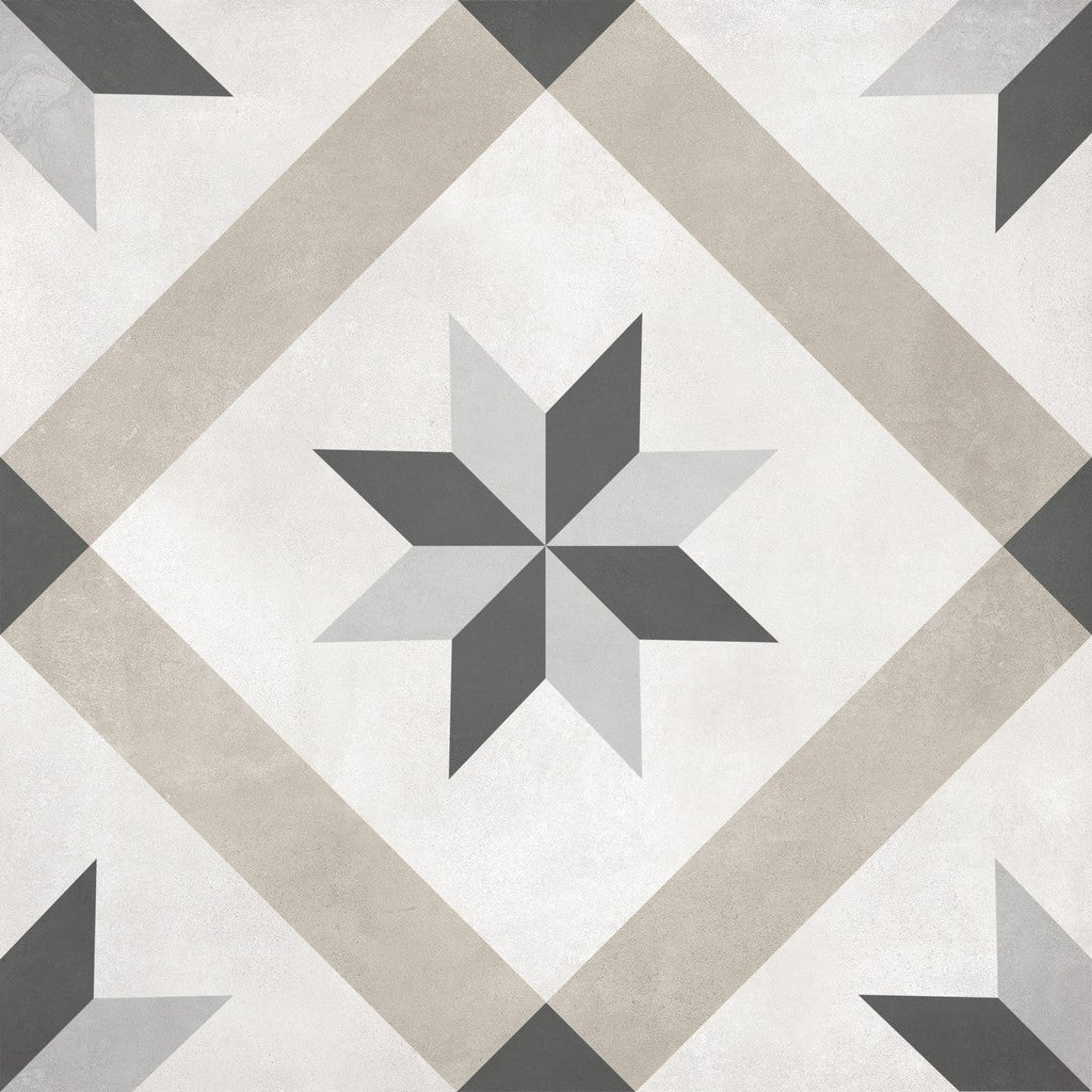 Tesoro Form 8" x 8" Pressed Matte Compass Deco Porcelain Tile is a great choice for adding a bold and directional pattern to your floor or wall. The compass design creates a sense of movement and visual interest, making it a focal point in any room. This durable porcelain tile is perfect for high-traffic areas and is easy to maintain, ensuring a long-lasting and beautiful installation. Navigate your design with the strong lines of the Form Compass Deco tile.