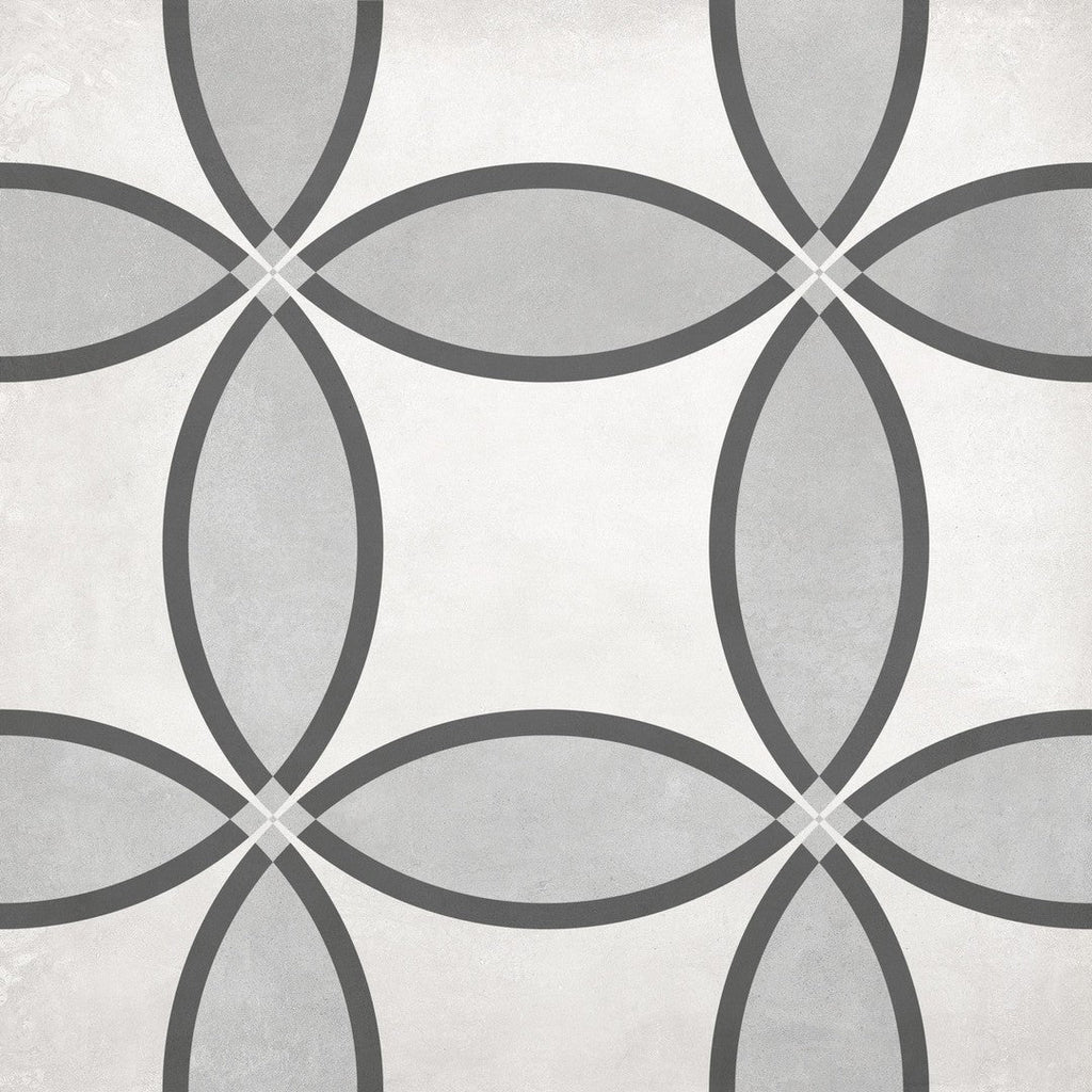 Tesoro Form 8" x 8" Pressed Matte Zenith Deco Porcelain Tile features a bold and dynamic pattern that creates a captivating visual effect. The intricate Zenith design is perfect for adding a sophisticated, architectural element to your floors or walls. This durable porcelain tile is designed to withstand daily wear and tear, making it an ideal choice for both residential and commercial projects. Reach new design heights with the striking Form Zenith Deco tile.