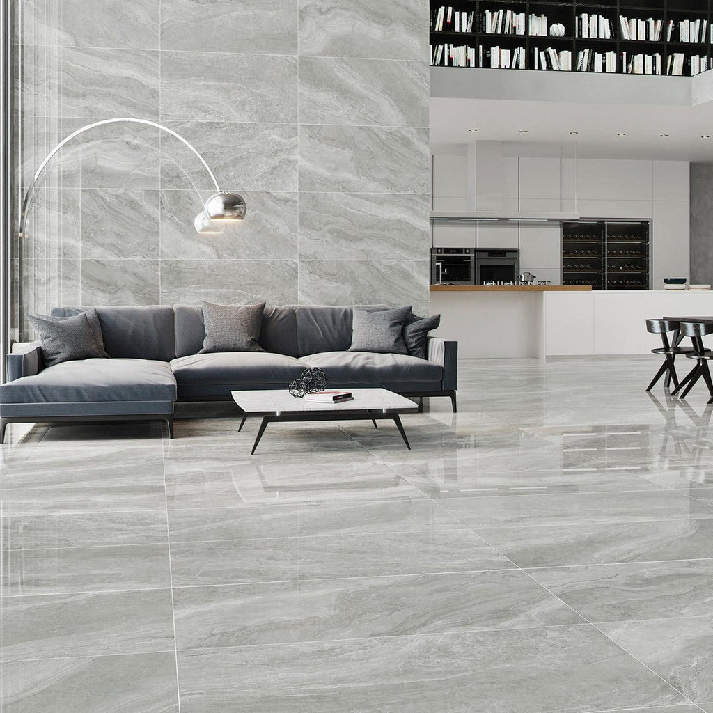 Tesoro Galaxy 24" x 48" Rectified Polished Porcelain Tile brings the look of a celestial expanse to your floors and walls. The large-format 24" x 48" size and rectified edges ensure a sleek, nearly seamless installation, while the polished finish adds a luxurious, high-gloss sheen. Ideal for creating a grand statement in residential or commercial settings, Tesoro Galaxy is a premium porcelain tile for modern luxury.