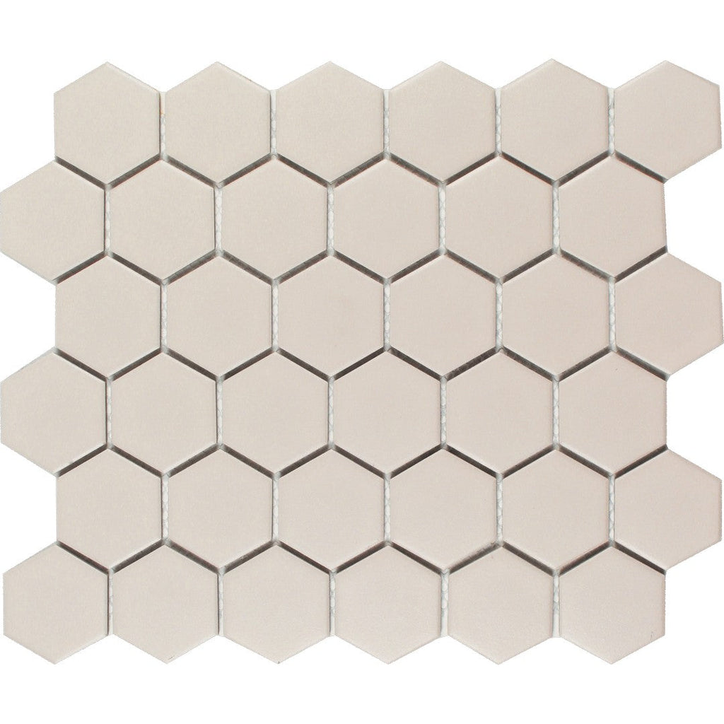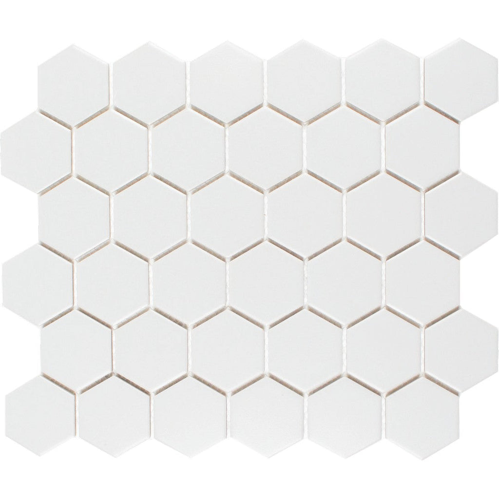 Tesoro Gallery 11" x 12.5" Pressed Textured Hexagon Porcelain Mosaic adds a classic yet modern touch with its unique hexagon shape and textured finish. This durable porcelain mosaic is ideal for creating stunning feature walls, shower floors, or backsplashes. Enhance your home with the timeless geometric pattern and tactile appeal of the Tesoro Gallery Hexagon mosaic.