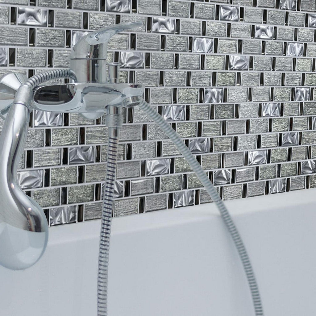Tesoro Glamour 11.75" x 12" Interlocking Linear Glass Mosaic lives up to its name, offering a chic and sophisticated design. The linear, interlocking glass strips create a seamless, fluid look that is perfect for backsplashes, feature walls, and accent areas. Add a touch of elegance and shine to your home with the stunning Tesoro Glamour mosaic.