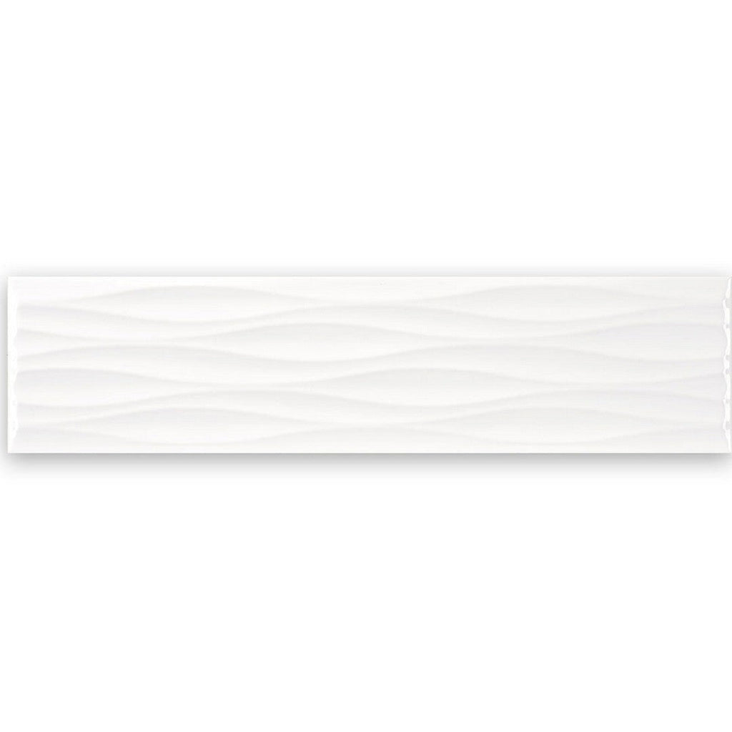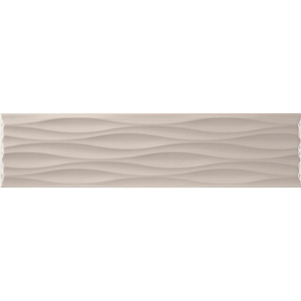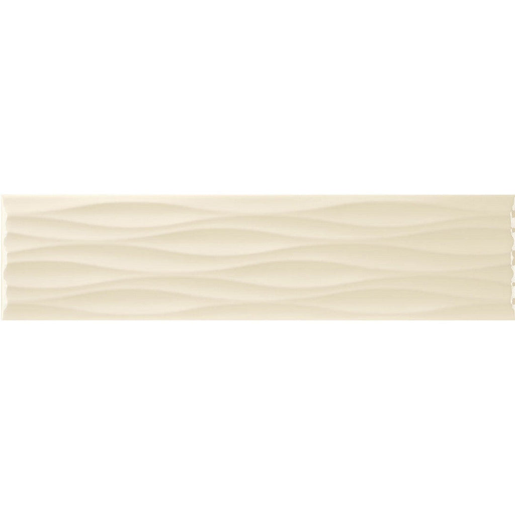 Tesoro Krea 4" x 16" Pressed Glossy Ceramic Ripple Deco Wall Tile creates dynamic visual interest with a glossy ceramic finish in a trendy, elongated 4" x 16" format featuring a subtle ripple decorative texture. This pressed wall tile is perfect for adding movement and a luxurious, light-catching element to bathroom or kitchen feature walls.