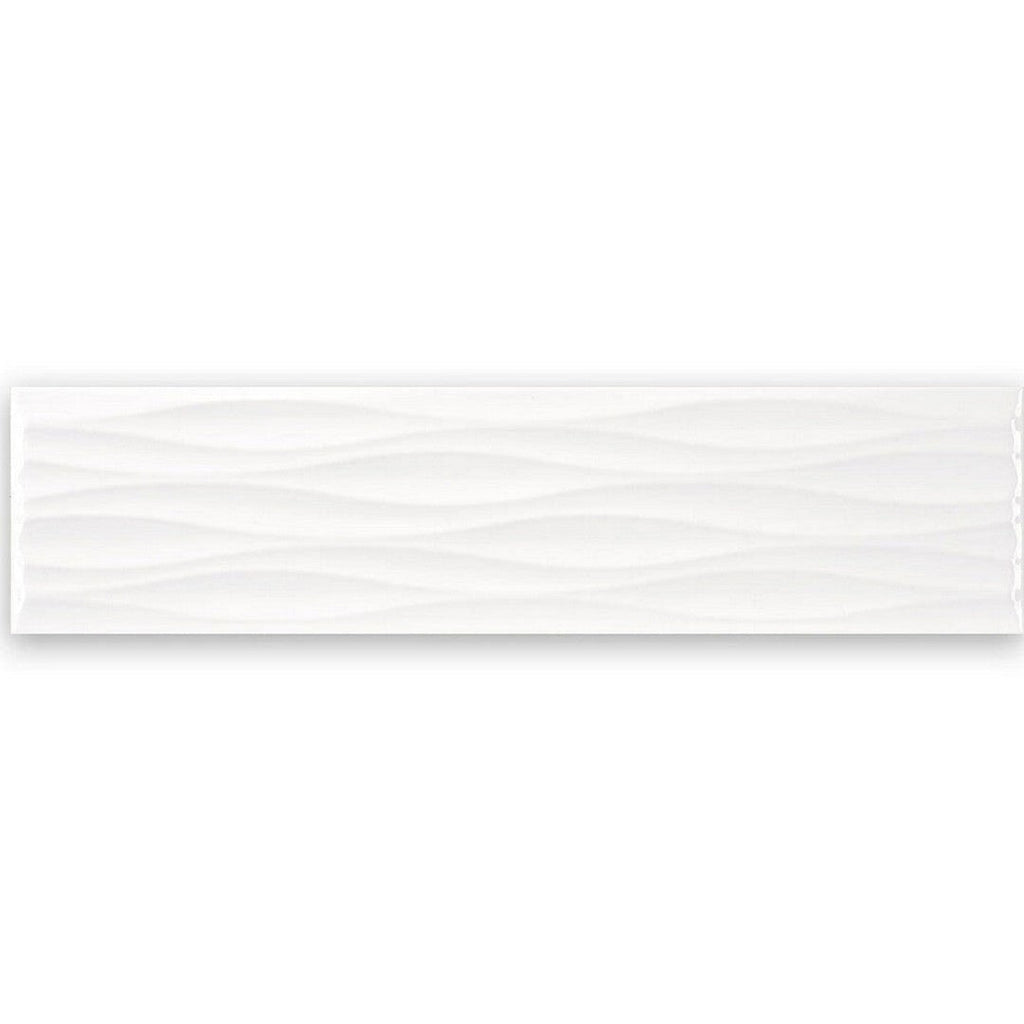 Tesoro Krea 4" x 16" Pressed Matte Ceramic Ripple Deco Wall Tile provides a captivating textural element on walls with its 4" x 16" pressed matte ceramic tile featuring a unique ripple pattern. This elongated decorative wall tile offers a durable, contemporary finish, adding depth and subtle visual interest to any modern space.