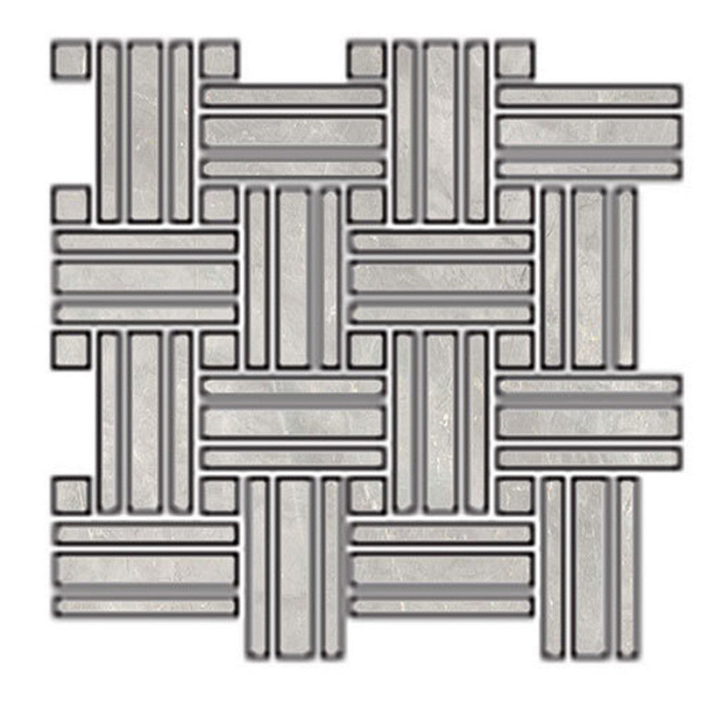 Tesoro La Dolce Vita 11.5" x 11.5" Rectified Matte Porcelain Basketweave Mosaic delivers a timeless, intricate look with a durable, marble-look rectified matte porcelain basketweave pattern. This elegant mosaic is a perfect flooring solution for bathrooms and entryways, providing a classic, sophisticated aesthetic with minimized grout visibility.