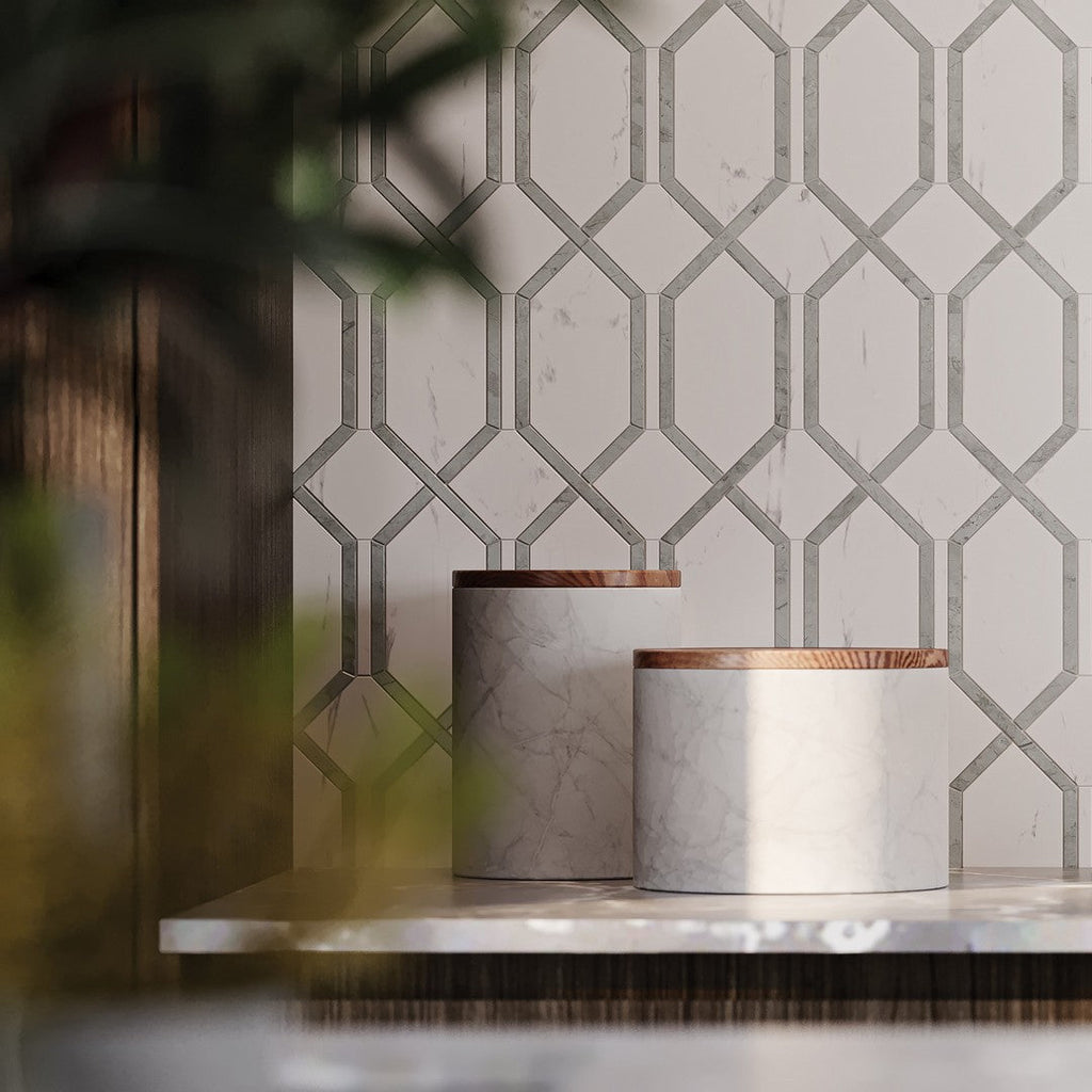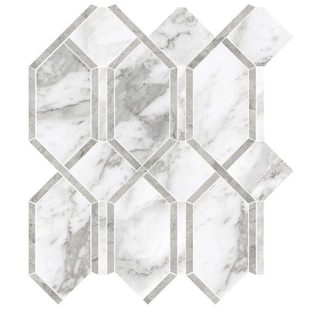 Tesoro La Marca 13.75" x 11.75" Rectified Polished Modella Porcelain Mosaic is a statement of artistry and refinement. The polished finish radiates brilliance, while the intricate Modella pattern adds texture and visual depth. Perfect for accent walls, shower niches, and decorative borders, it brings a designer touch to any residential or commercial project.