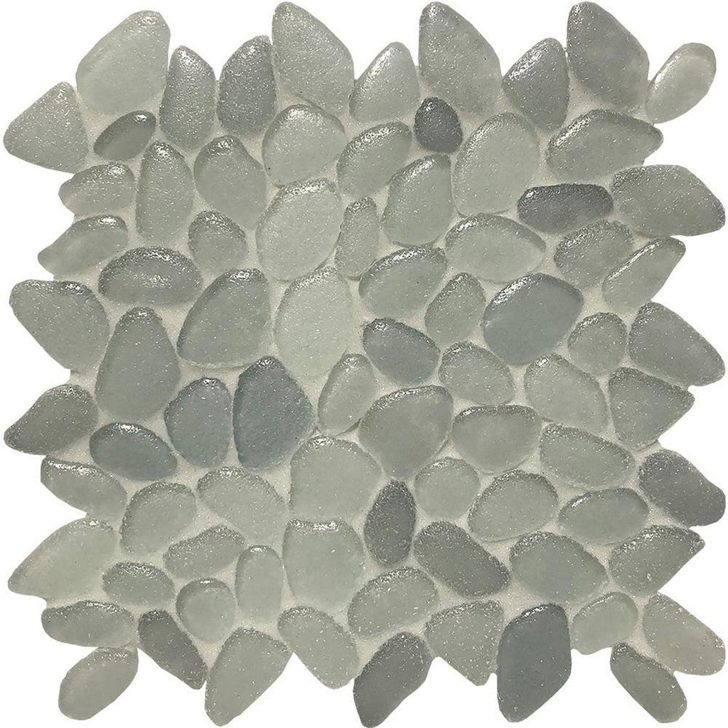 Tesoro Liquid Rocks 10.5" x 10.5" Random Pebble Glass Mosaic features an organic, river-rock look created from smooth, translucent glass pebbles for a stunning, textured effect. This random pebble glass mosaic is a unique choice for shower floors, backsplashes, and water features, offering a natural aesthetic with a contemporary, light-reflecting glass finish. Install Liquid Rocks glass mosaic for a bespoke, spa-like feel in your home.