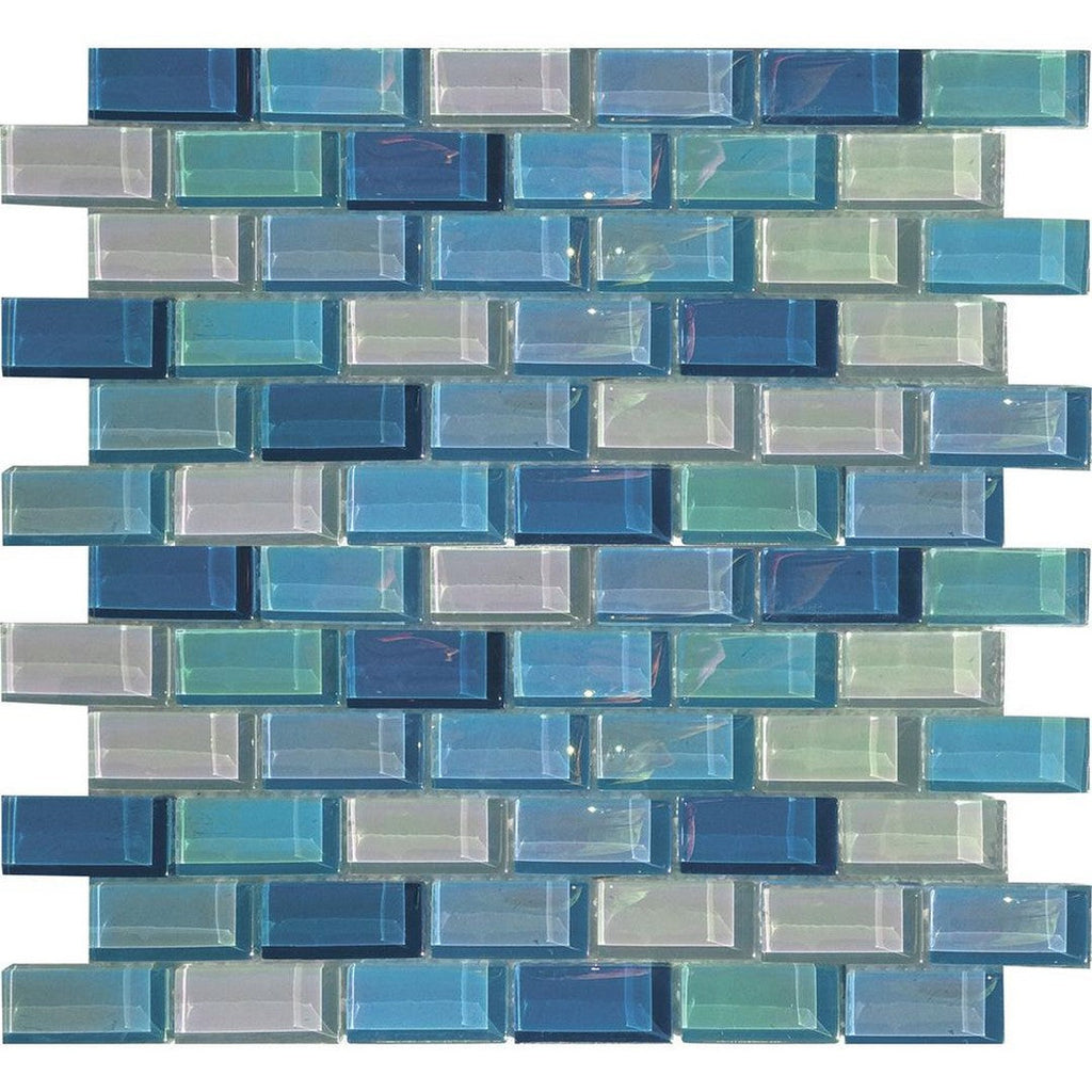 Tesoro Lux Aqua 12" x 12" Staggered Glass Mosaic utilizes a chic staggered layout to add subtle movement and visual depth to vertical surfaces. The 12x12 staggered glass mosaic sheet ensures simple installation, providing a modern glass tile design ideal for backsplashes, shower walls, and feature areas that demand contemporary style.
