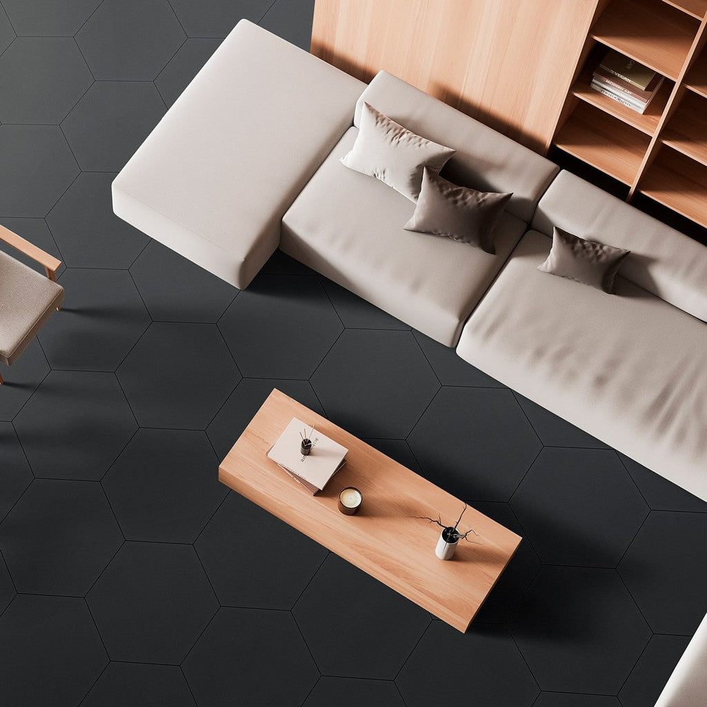 Tesoro Mayan 20.5" x 23.5" Pressed Matte Hexagon Porcelain Tile makes a bold statement with its large format hexagon shape and matte finish. This durable 20.5x23.5 porcelain tile is perfect for high-traffic floor and wall applications, bringing an authentic, geometric flair to modern and traditional interiors.