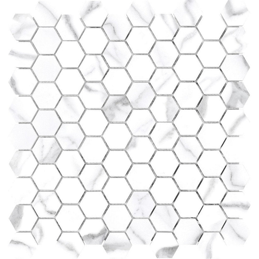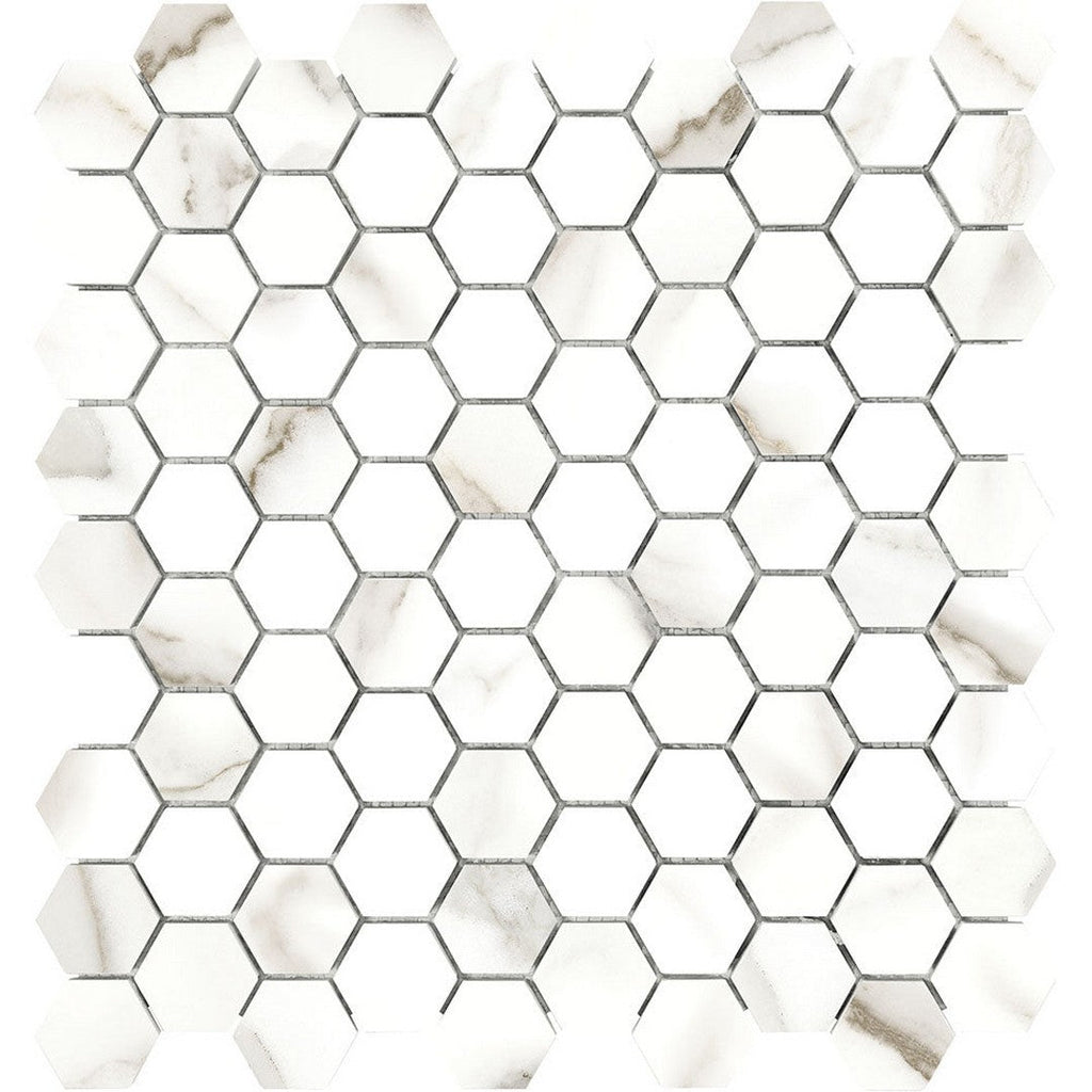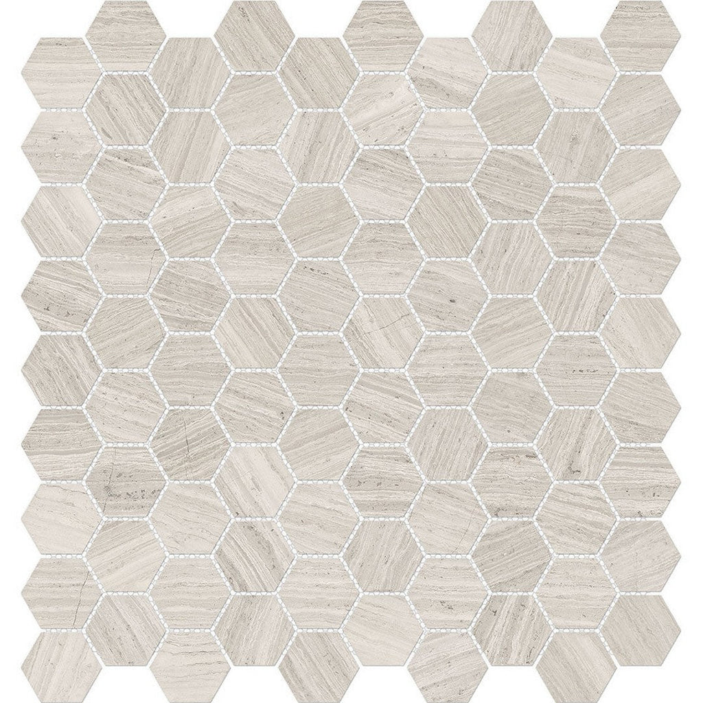 Tesoro Mayfair 11.5" x 12" Rectified Polished 1.25" Hexagon Porcelain Mosaic delivers a contemporary touch with its polished, small-scale 1.25" hexagon pattern. This 11.5x12 rectified porcelain mosaic is perfect for shower floors, accent walls, and stunning backsplashes, combining durability with dazzling design.