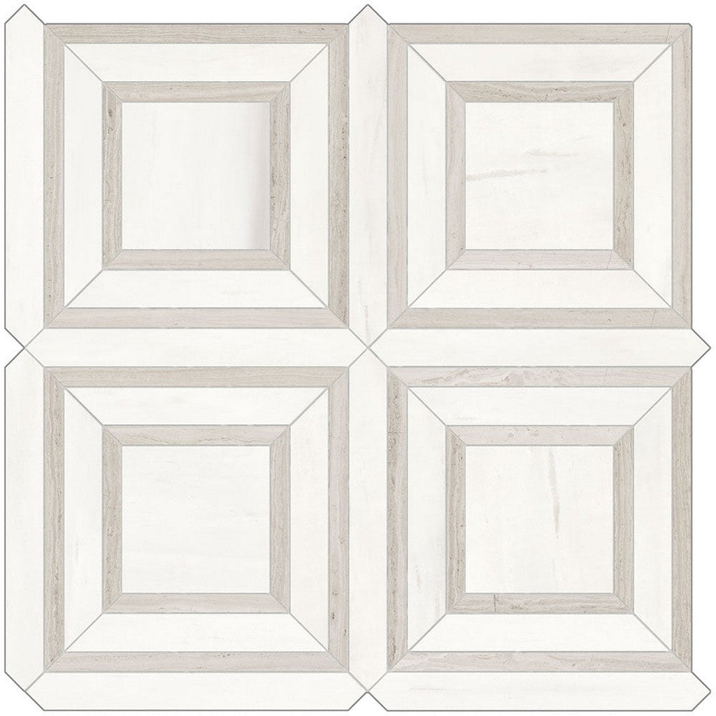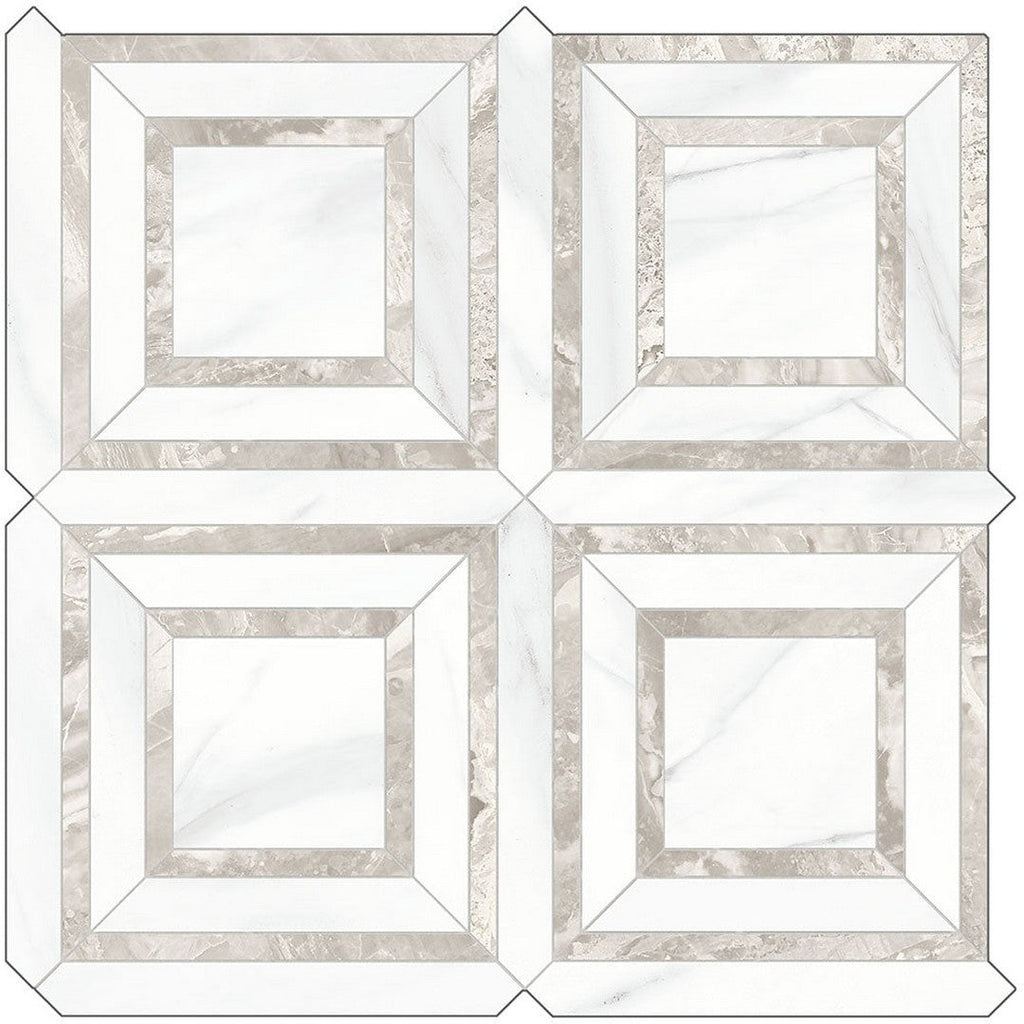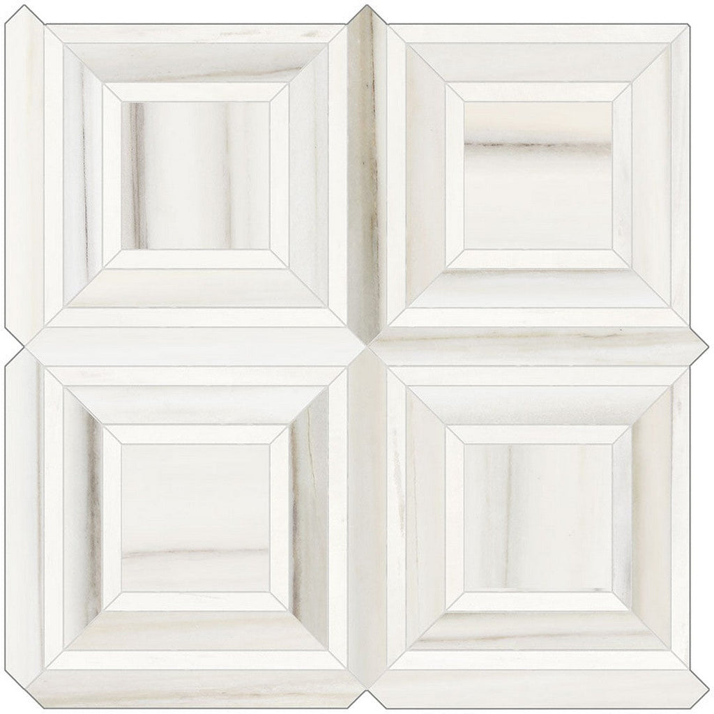 Tesoro Mayfair 11.75" x 11.75" Rectified Polished Piazza Porcelain Mosaic creates dynamic visual interest with its structured, polished piazza pattern. This 11.75x11.75 rectified porcelain mosaic is an ideal choice for decorative floors or walls, merging geometric precision with a reflective finish.
